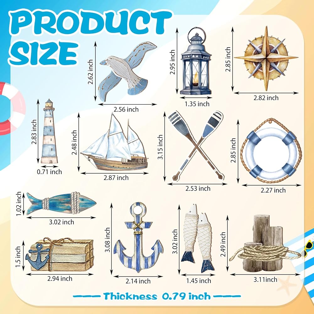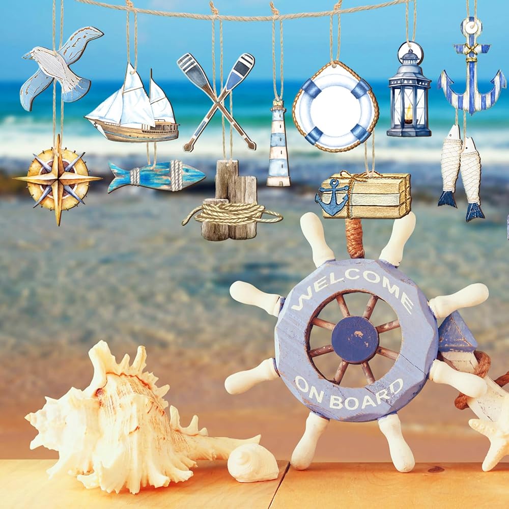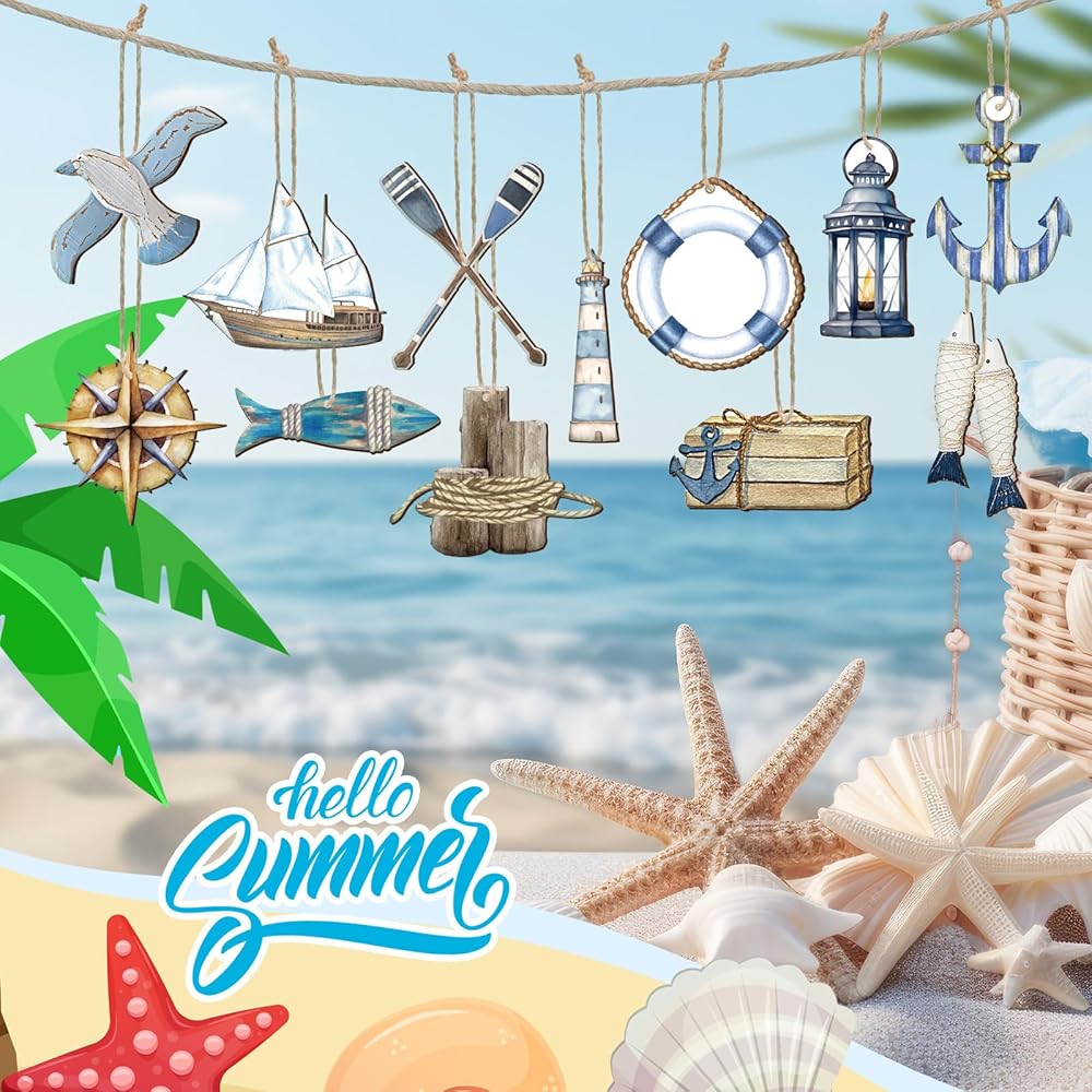 ديكور بطابع المحيط: تأتي هذه الديكورات المعلقة الصيفية بأنماط مختلفة، وهي عوامة النجاة والمجداف والضوء وأكثر من ذلك، مع مزيج كامل وألوان زاهية وأنماط زاهية، وهي مجموعة ديكور جميلة
