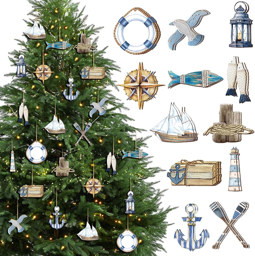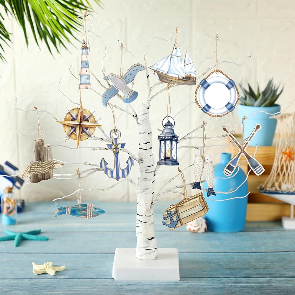 24 قطعة من الحلي الخشبية الصيفية، ديكورات شجرة الشاطئ المحيطية، الملاحة البحرية الساحلية، قطع خشبية للصيف، زخارف معلقة، ديكورات صيفية للمنزل، شجرة صغيرة، مكتب الحفلات