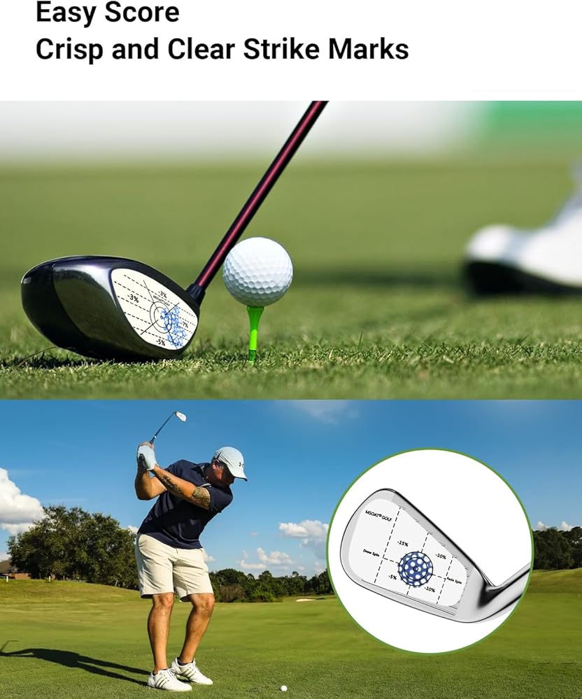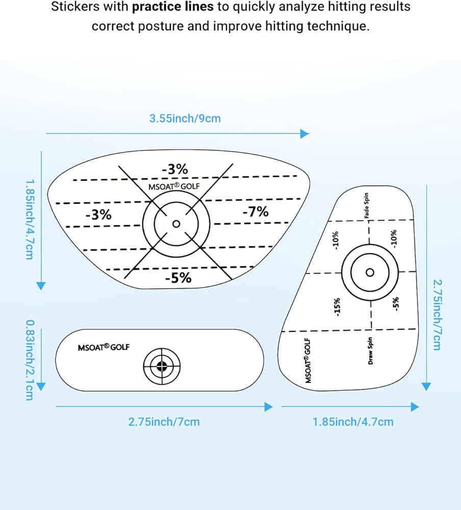 Continual Improve Your Consistancy: If the ball is hit in the sweet spot, it will fly with the best flight curve and reach the best length. Our Golf Impact Stickers pattern accurately shows the percentage of distance loss on shots off the sweet spot, Golf Impact Tape which is useful to help you adjust your swing and your posture on each shot.