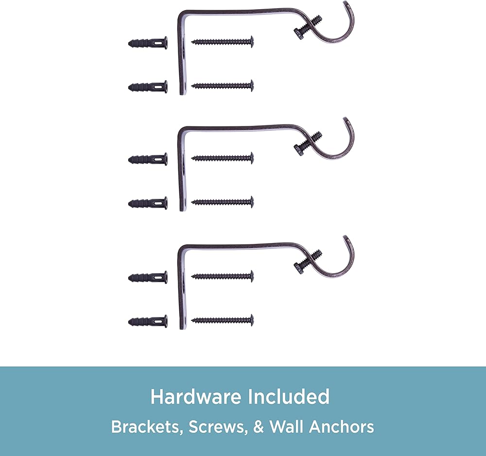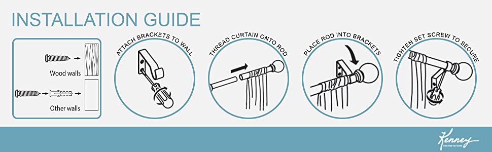 Includes: one telescoping curtain rod with finials, two brackets, one center support, screws, drywall anchors, and installation instructions