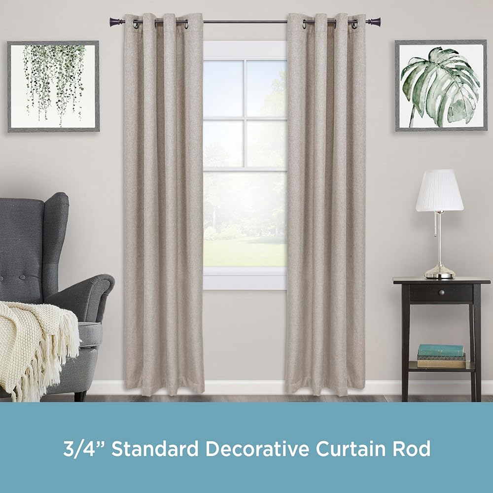 3/4" diameter curtain rod adjusts from 36-66" to fit your window and projects 3.73” from the wall