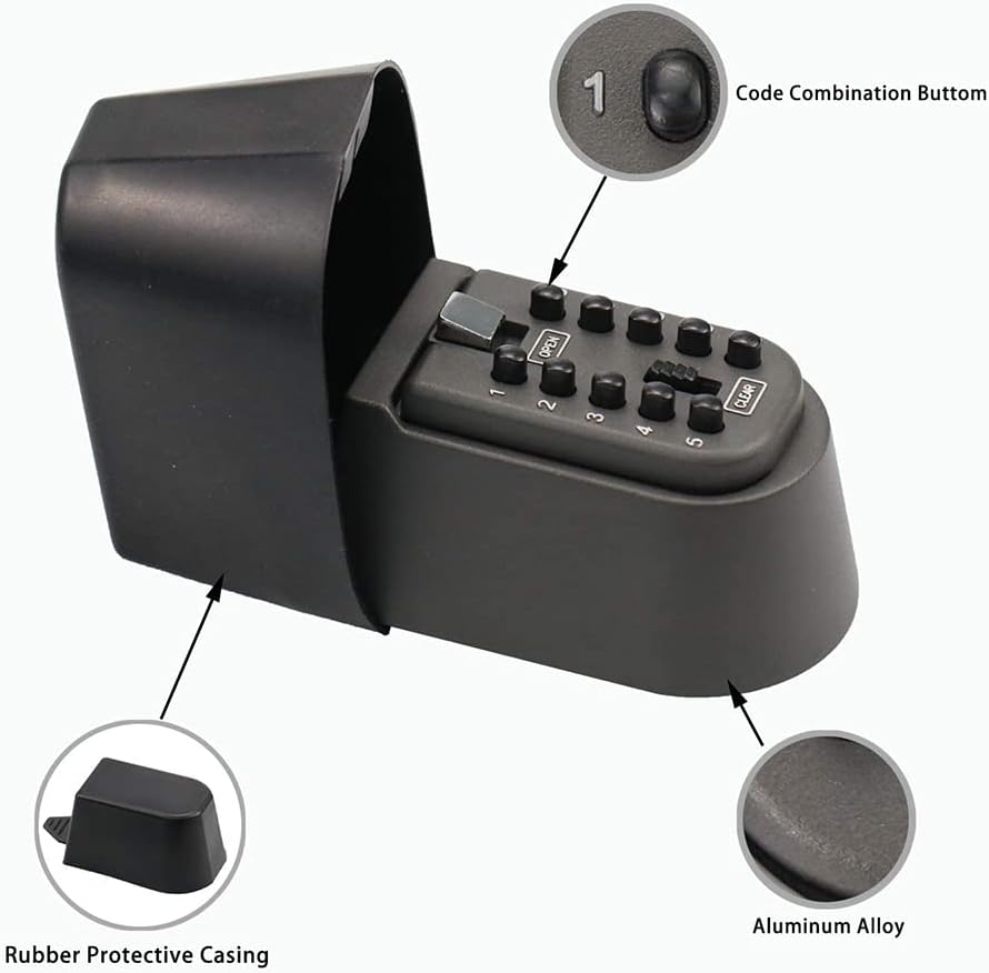 إنه يوفر مساحة تخزين داخلية واسعة وآمنة للغاية لمقتنياتك الثمينة - فهو سيحمل المفاتيح بالإضافة إلى مفاتيح السيارة والصناديق وبطاقات الائتمان/الهويات، كل صندوق آمن للمفتاح مزود بغطاء مطاطي مقاوم للطقس لحماية سلامتك من العناصر الخارجية. يساعد أيضًا على إخفاء خزنة مفاتيحك.