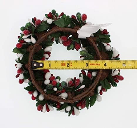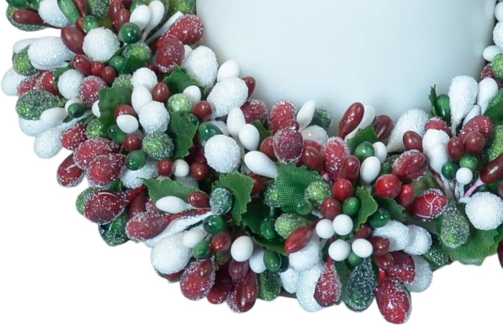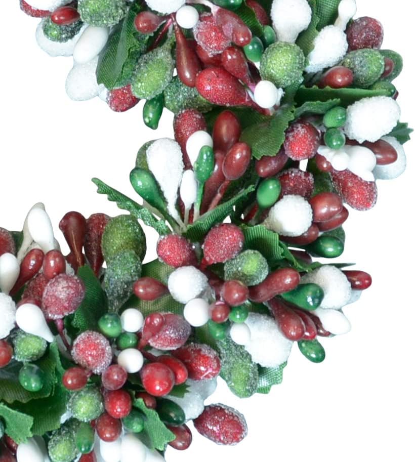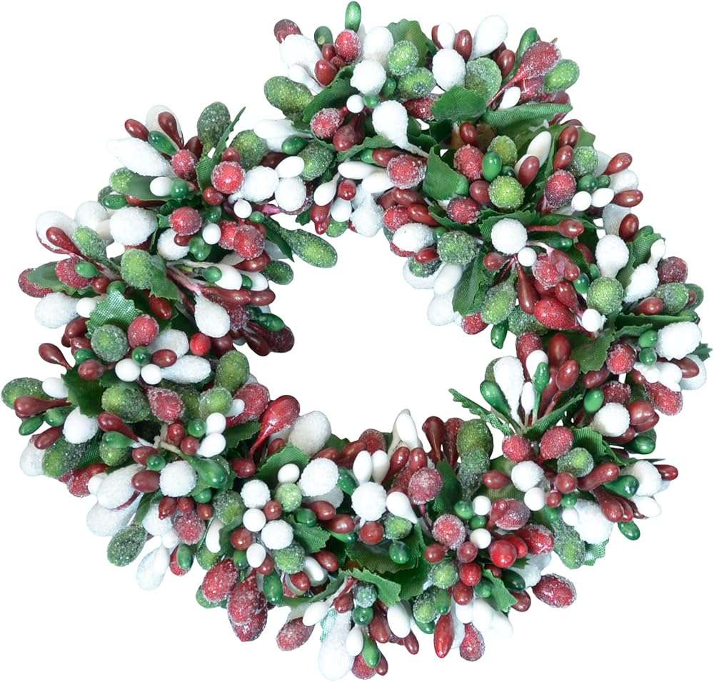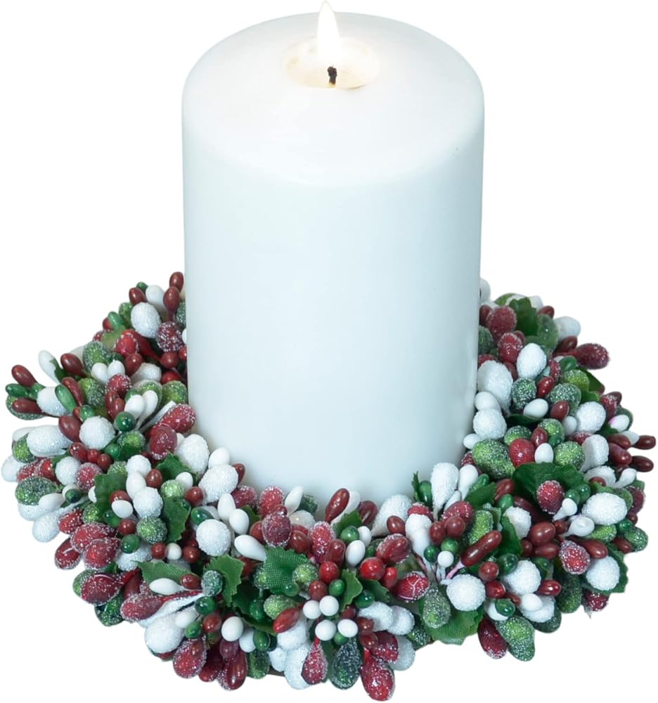 6-inch (3.4-Inch Inner Ring) Artificial Beaded Berry Wreath Candlering Candle Ring Green Red White