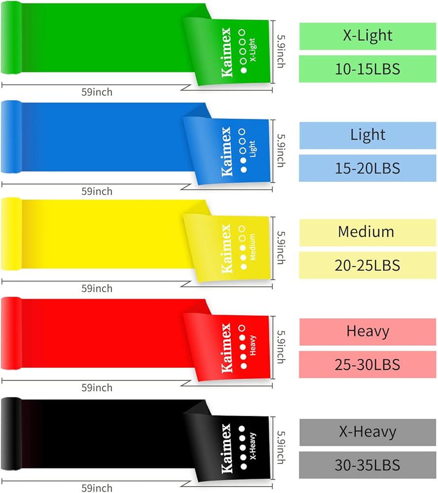 Resistance Level: Each resistance bands has different resistance levels (X-Light, Light, Medium, Heavy, X-Heavy)