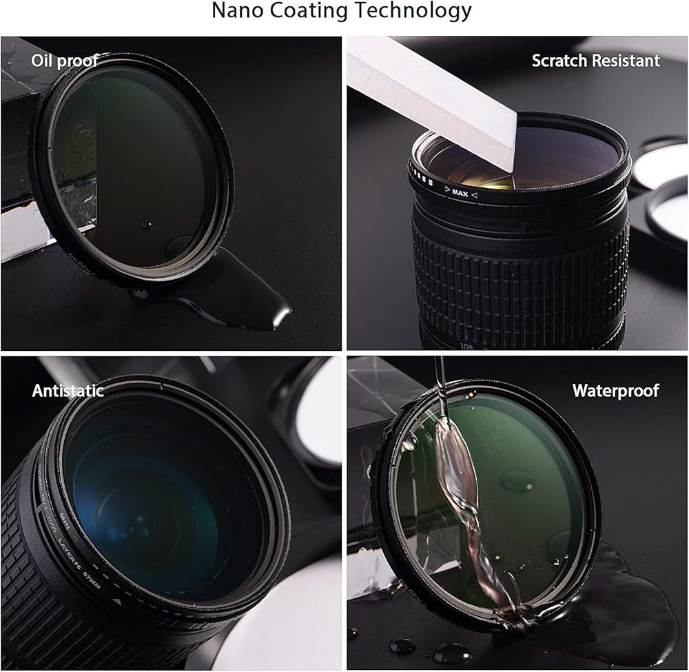 【فلتر ND متغير】فلتر ND2-ND2000 يقلل الضوء من 1 إلى 11 درجة توقف. يعمل بشكل رائع لأشعة الشمس الساطعة الخارجية وممتاز لالتقاط صور التعرض الطويل.