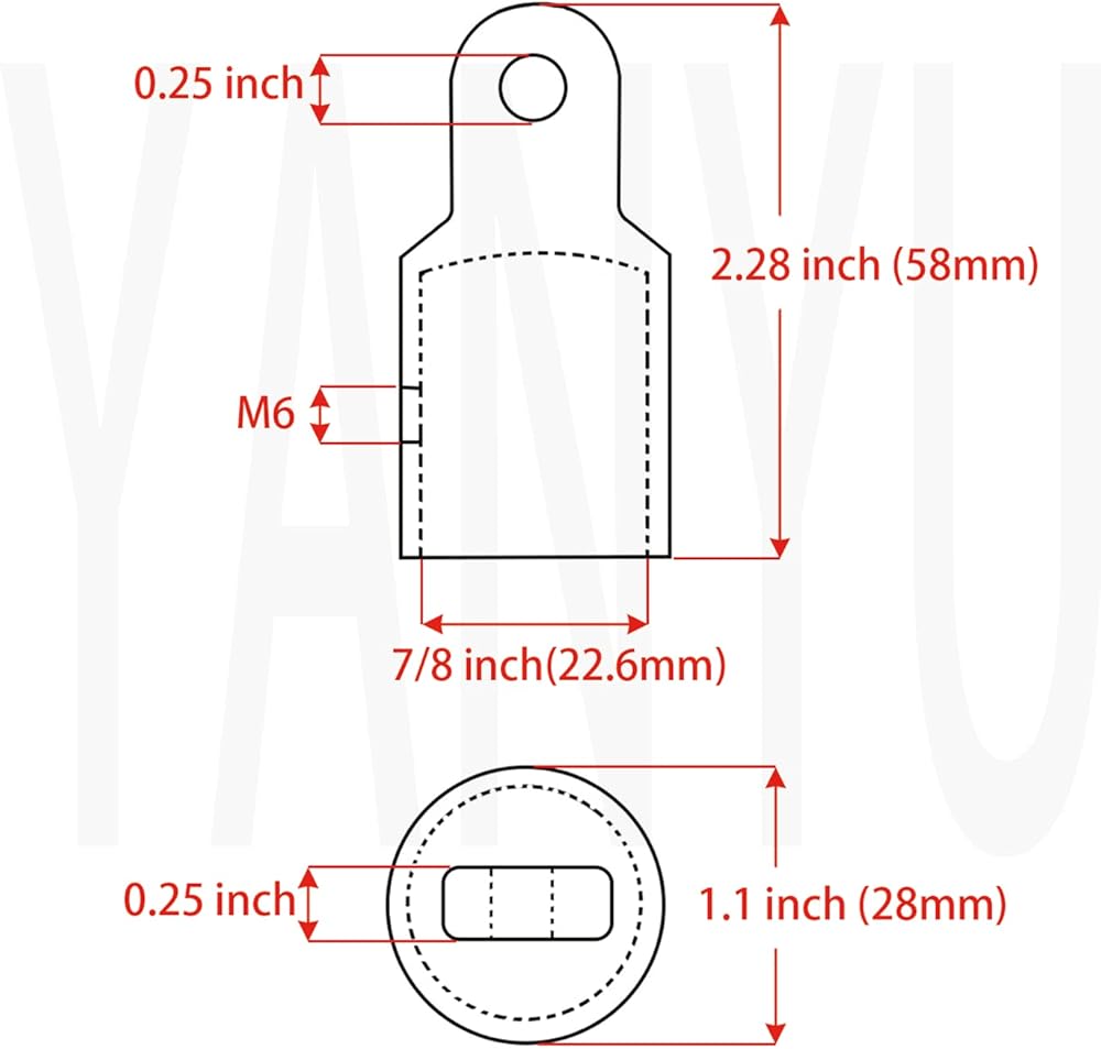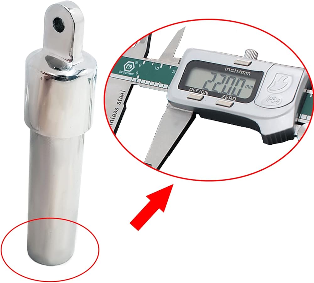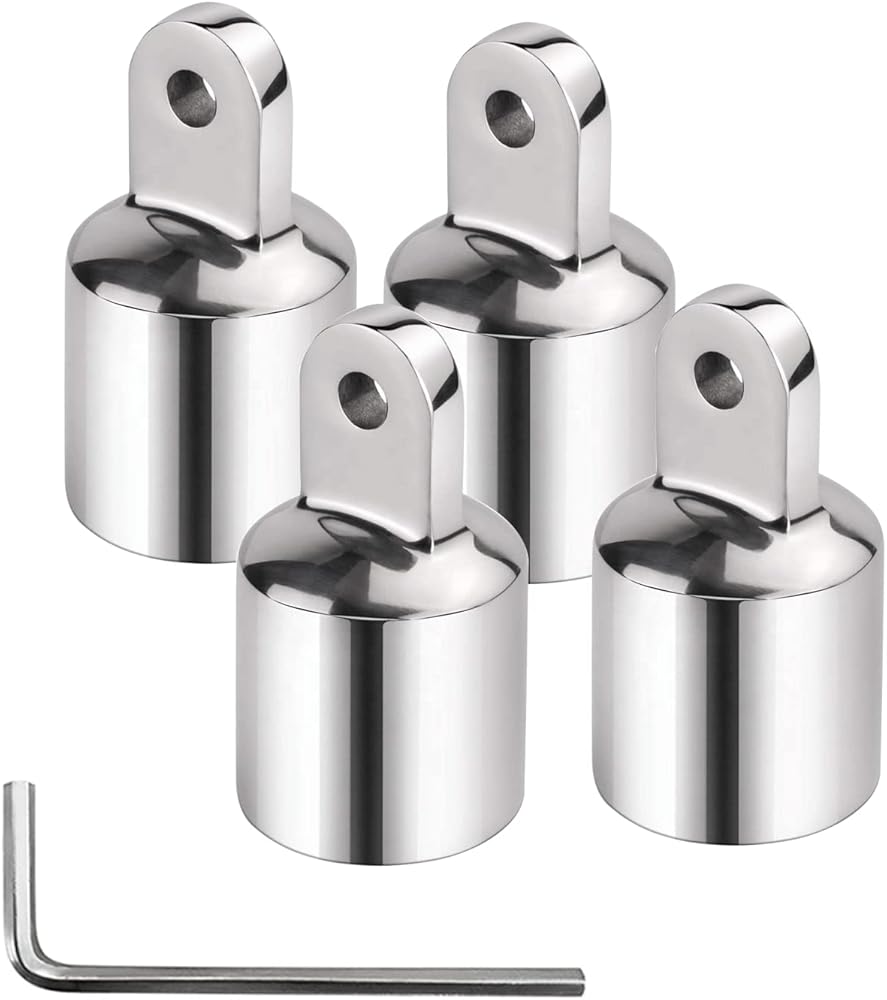 YANYU 4 Pack 7/8 inch Bimini Top Eye End Cap Fits 7/8'' O.D. Round Tubing,316 Stainless Steel Marine Hardware ,Boat Canopy Bimini Top Fittings with L Shape Hex Key Specification: Material: 316 Stainless steel; Internal Diameter: 22.6mm (7/8 inch); Outside Diameter: 28mm (1.1 inch); Thickness: 2.7mm ; Height: 58mm (2.28 in); Mounts: 1/4'' bolt holes; Package List: 4 pieces of Bimini top cap and 1 piece of L Shape Hex Key; - Fine polished & well-plated bimini top fittings; - 1'' I.D external eye end, fit for most 1'' O.D round tubing; - Corrosion resistance, solid, withstand harsh weather conditions; - Heavy duty 316 stainless steel for marine & industrial applications; - Perfect replacement parts for worn-out, plastic, nylon fittings; - Work with jaw slide to join the bimini top frame; - Easy to assemble and install; - Perfect replacement for marine hardware and accessories, widely used for boating,bass boat,fishing boat, kayak, canoe, yacht,boat cover ,Awning etc.