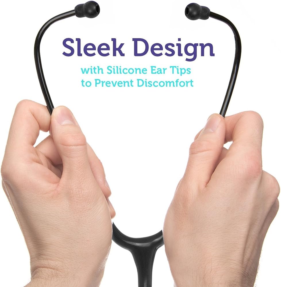 High-Quality Craftsmanship Jet-Black Dual Head For Listening To Specific Sounds With Either Side Thick Walled, Single Tubing Not Made With Natural Rubber Latex Lifetime Warranty Accessory Kit: Name Tag, 4 Replacement Silicone Ear Tips, And One Membrane Included Free Led Pen Pupil Gauge