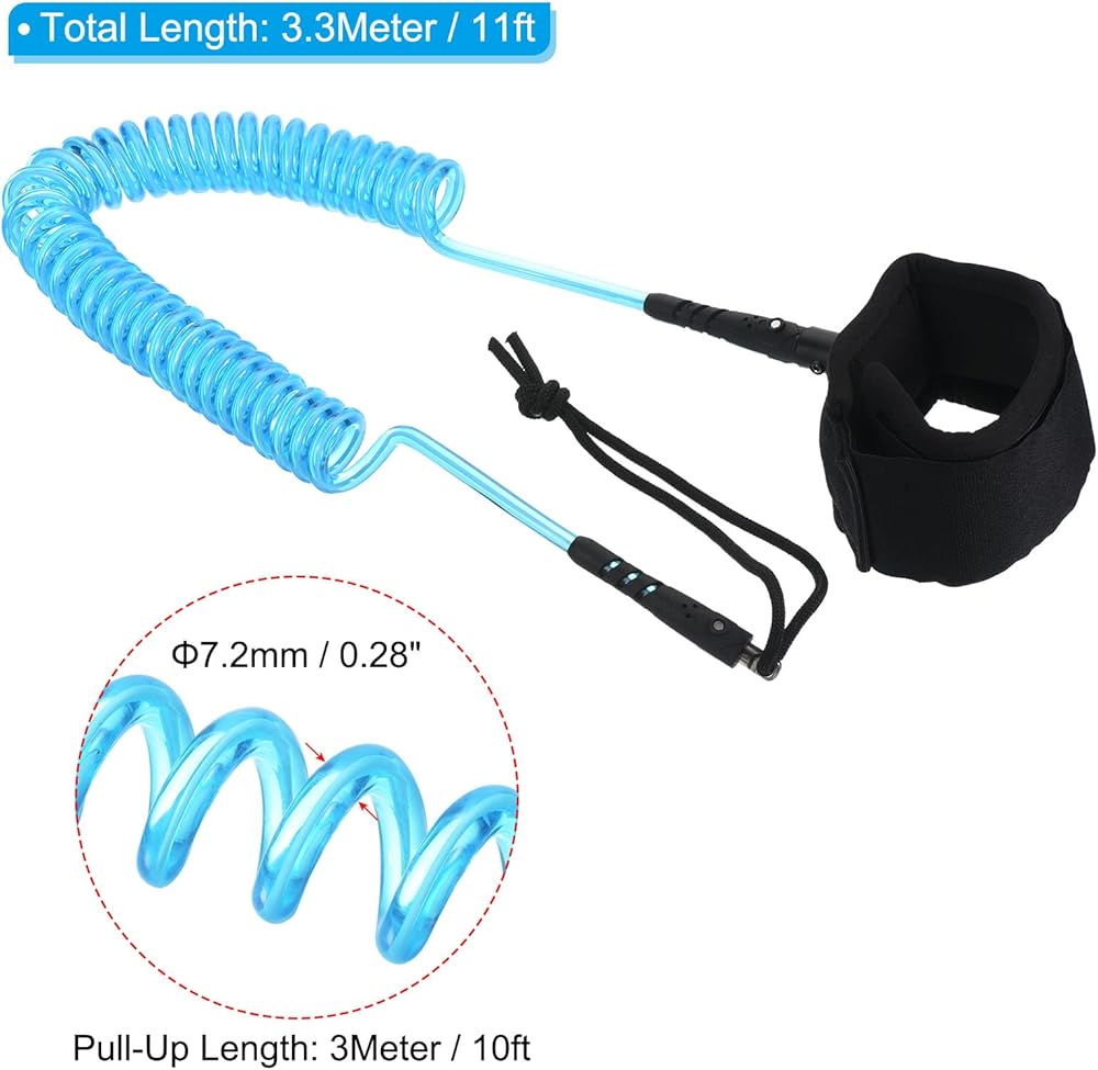 • Color: Mint Green; Material: TPU; Wristband Size: 460 x 65mm / 18.11 x 2.56 inch(L*W); Pull-Up Length: 2.7 Meter / 9.8 ft; Total Length: 3.3 Meter / 11 ft; Packing List: 1 x Stand Up Paddle Board Leash