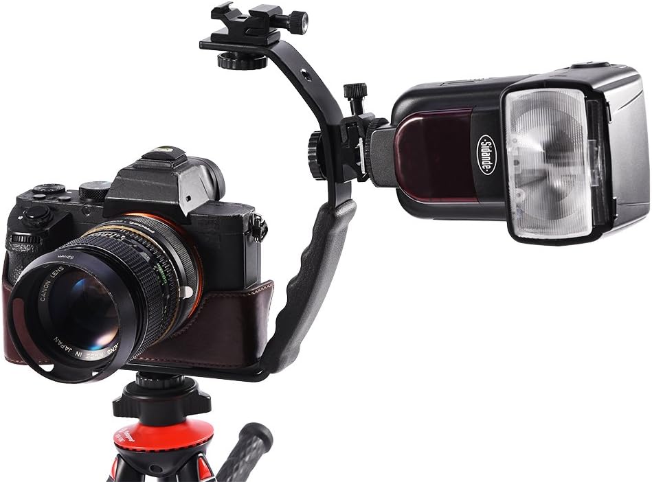 Compatibility: Camera Flash Bracket is compatible with any 120/135 film cameras, DV cameras that use a 1/4 inch mount.