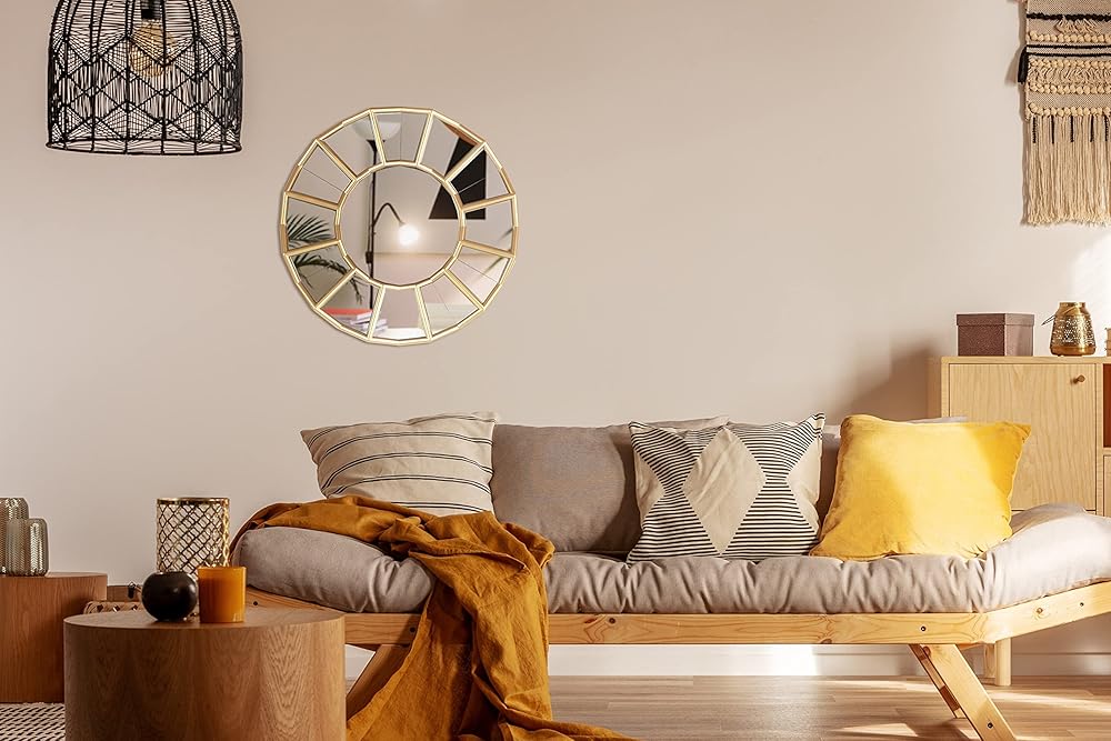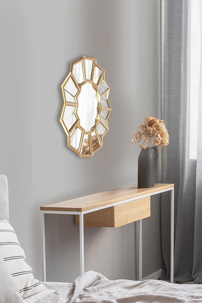 PREMIUM HIGH-QUALITY MATERIALS: Mirrorize decorative gold round mirrors are made to high standard with care and attention to both detail and design. The frames of the geometric gold mirrors are made from high-quality and sustainable polystyrene materials which offer a thick quality frame so that our mirrors are durable and long-lasting