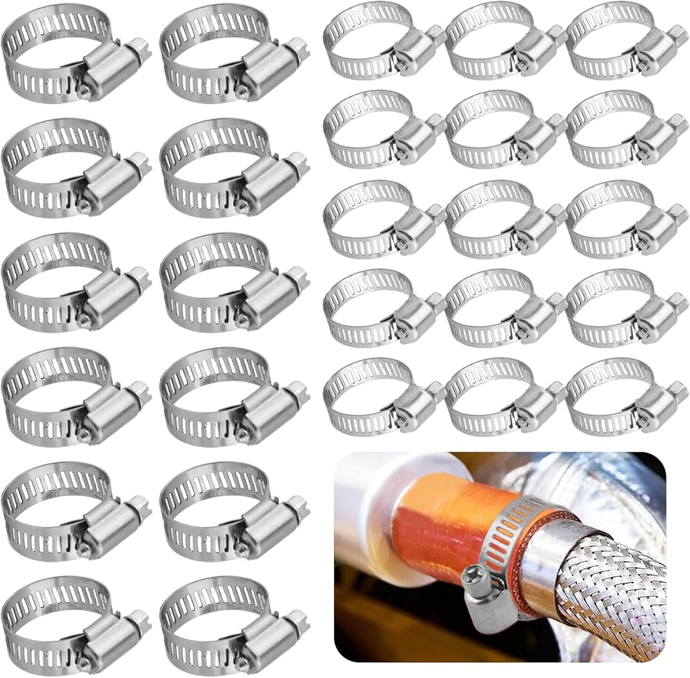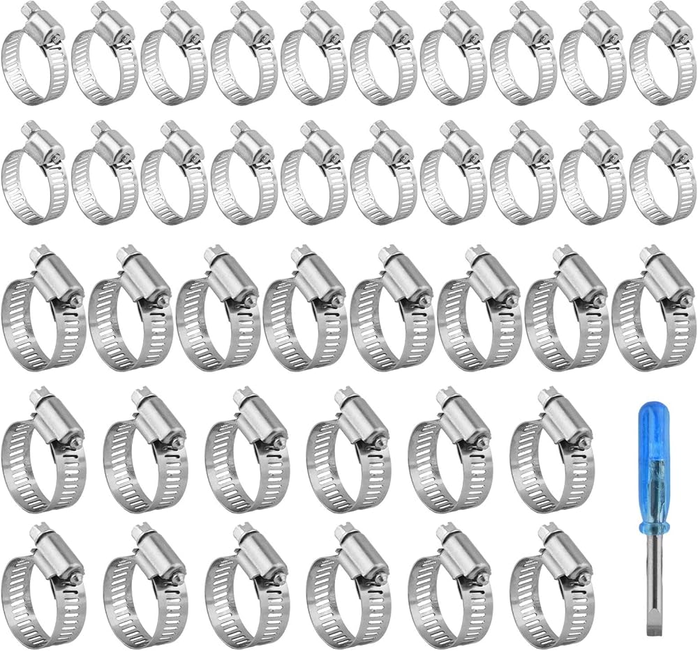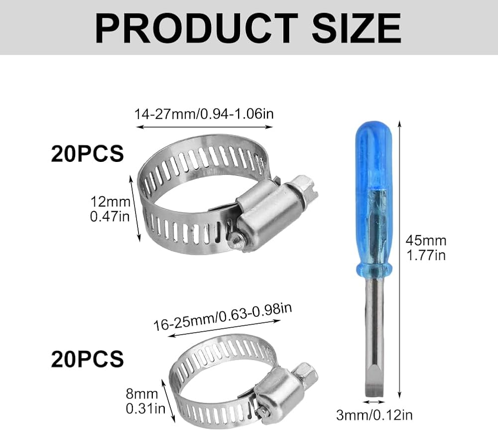 ?PACKAGE CONTENT?You will receive 1pc slotted screwdriver and 40pcs silver hose clamps, clamps includes 2 sizes(16-25mm/0.63-0.98inch, 14-27mm/0.94-1.06inch, each size 20pcs), enough quantity and size for your daily use and different needs.