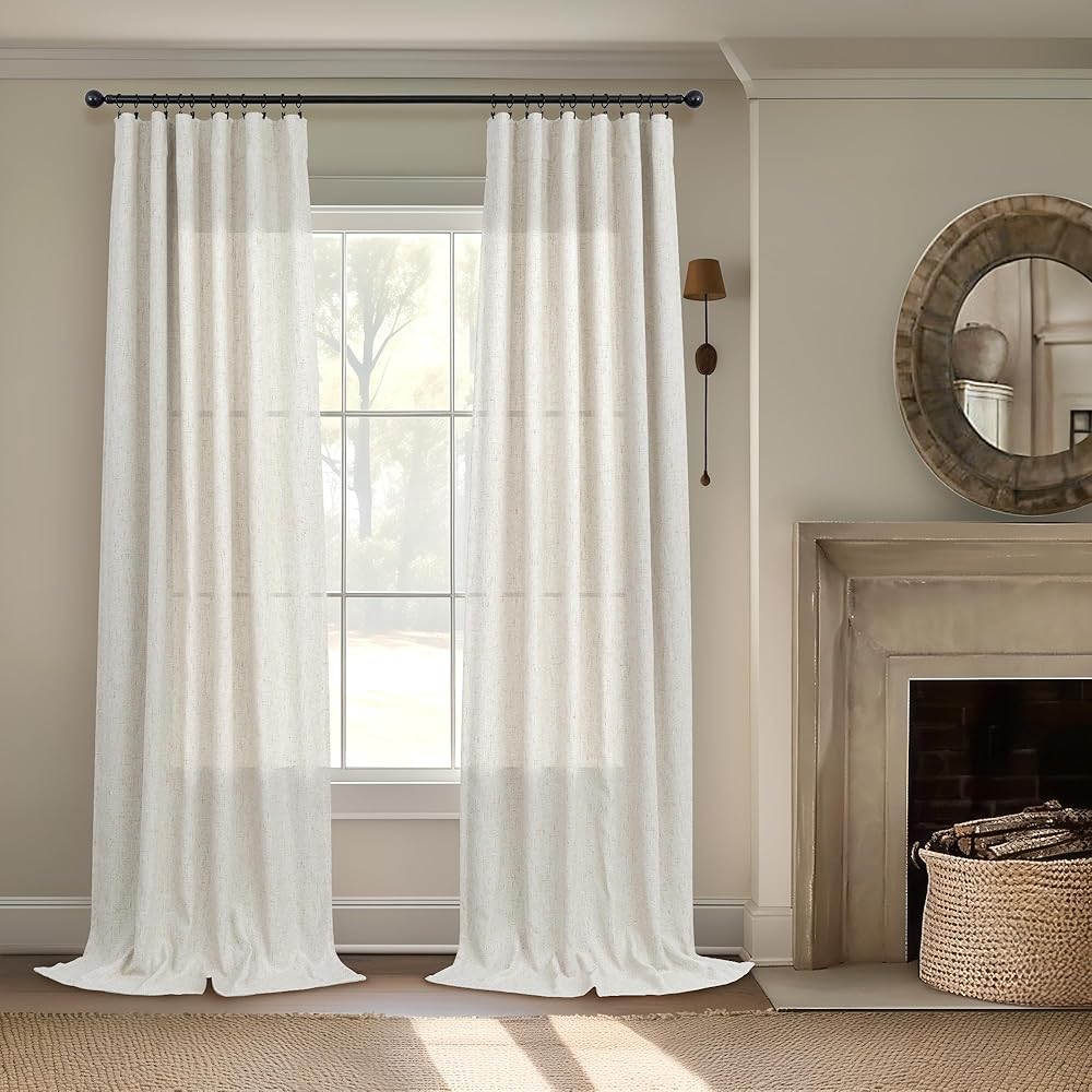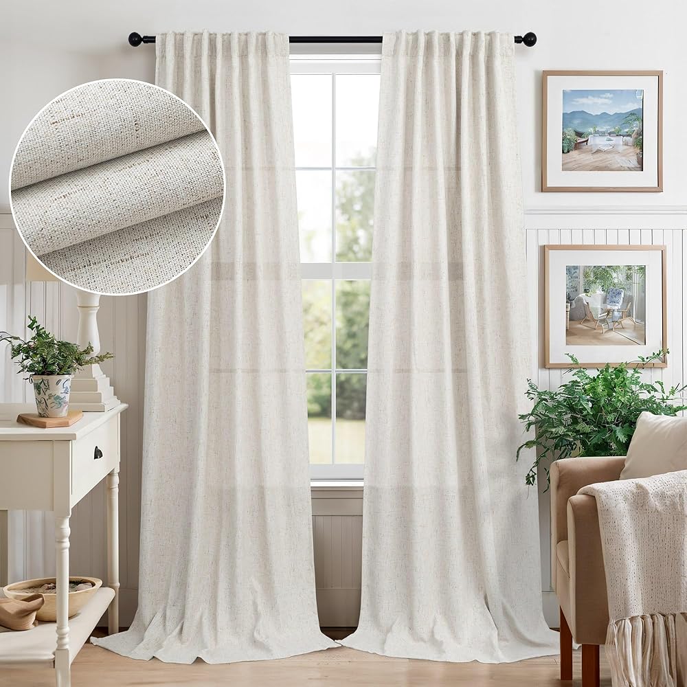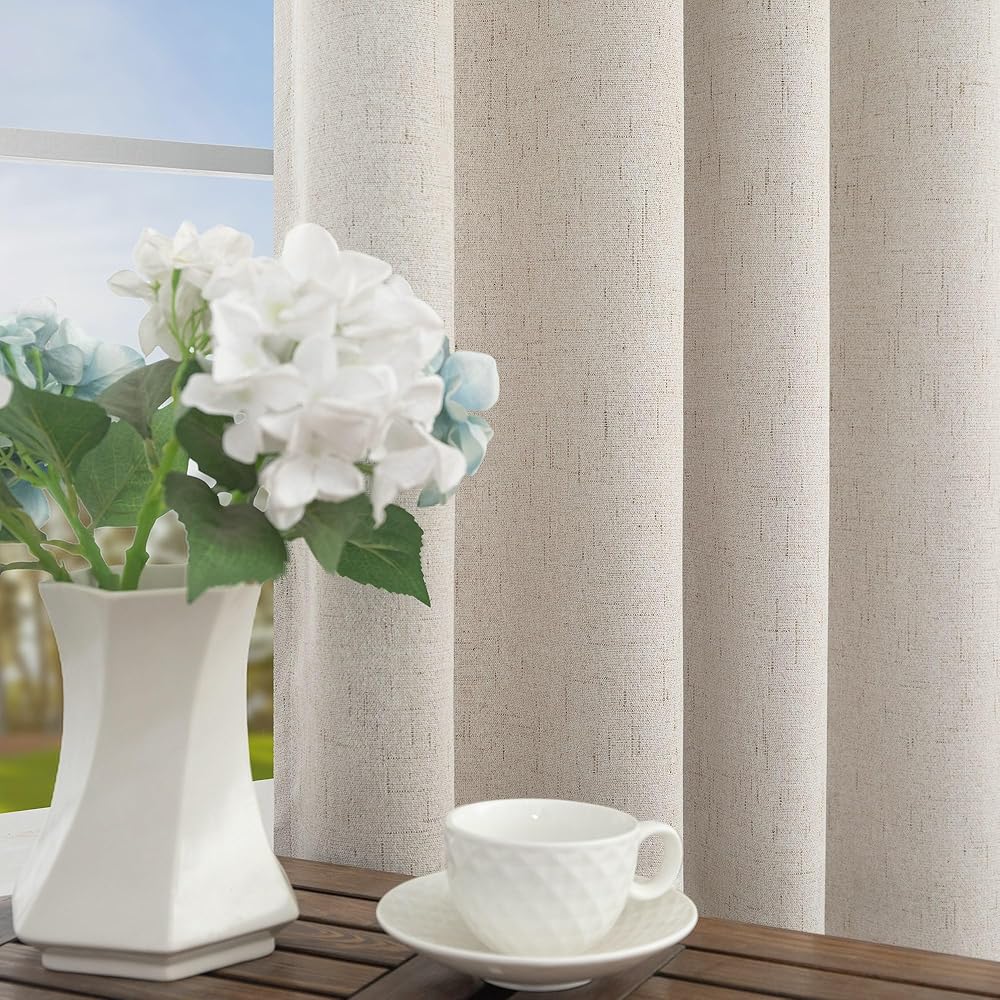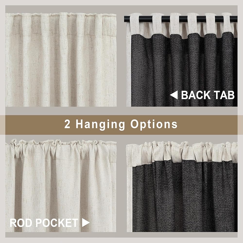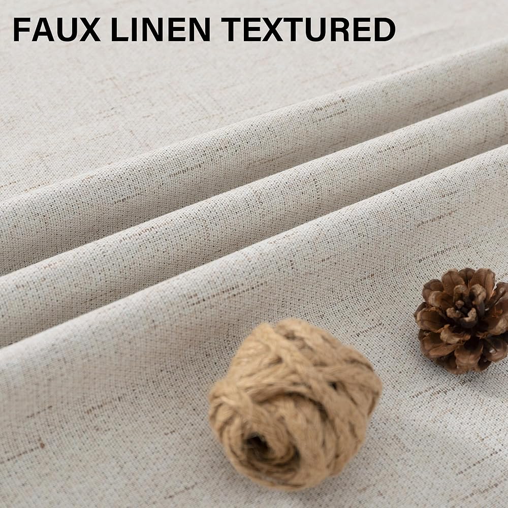 نسيج الكتان الصناعي الغني: هذه الستائر الأنيقة ذات المظهر الكتاني مصنوعة من نسيج الكتان الناعم والمنسوج (100% بوليستر)، منسوجة بظهر أسود يحجب الضوء على الظهر. تأثير محايد وخيش وبدائي يضفي مزيدًا من المظهر العتيق والأساسي واللون الأرضي والمظهر الكلاسيكي. يعتبر النسيج ذو النمط الكاجوال والبسيط مثاليًا لبيت المزرعة الحديث، أو المحايد، أو الأنيق الريفي، أو الشاطئ الساحلي، أو نمط الغرفة التقليدي.