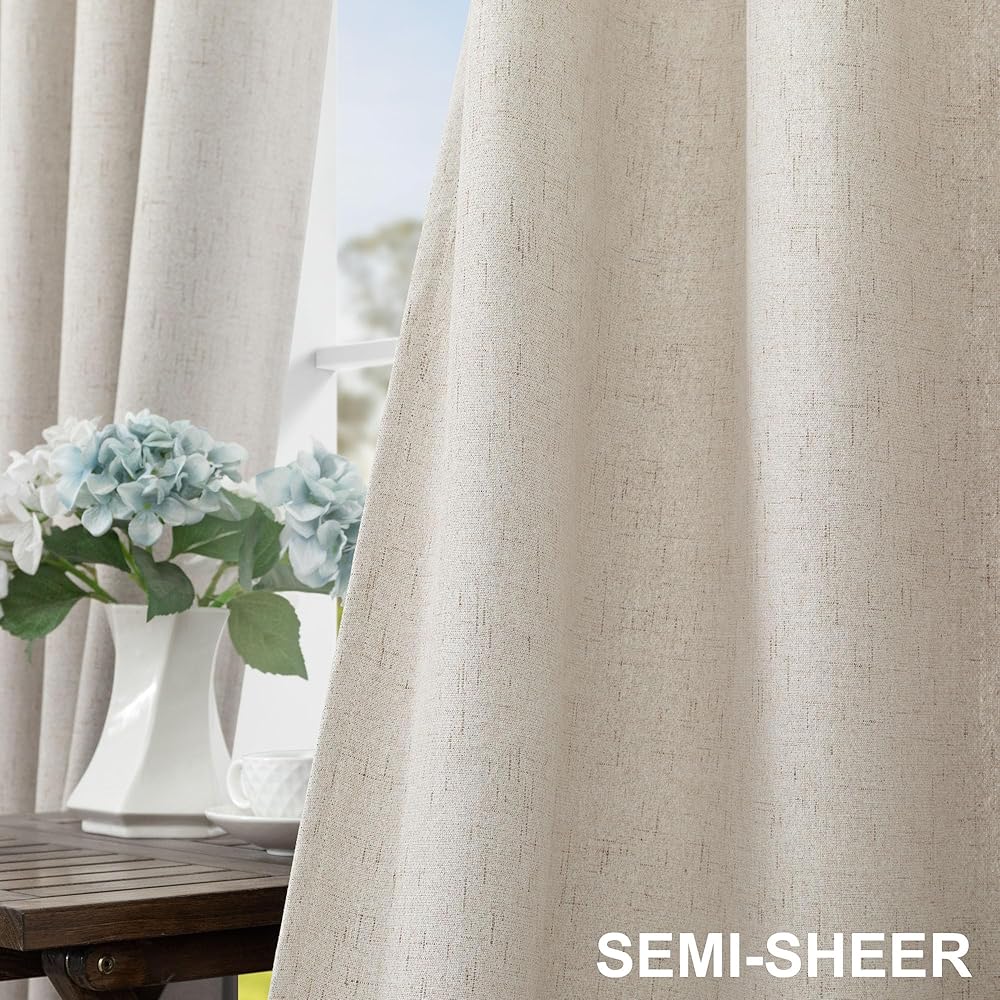 تصفية شبه شفافة للضوء: هذه الستائر ذات مظهر الكتان مع نسيج سميك ومنسوج بإحكام تحجب مستوى معين من ضوء الشمس بشكل فعال. تقليل الوهج وتقليل الأشعة فوق البنفسجية وتوفير بعض الخصوصية مع الأنشطة الداخلية. خلق بيئة مريحة ومتجددة الهواء مع السماح لبعض الضوء الطبيعي بالتسلل من خلالها