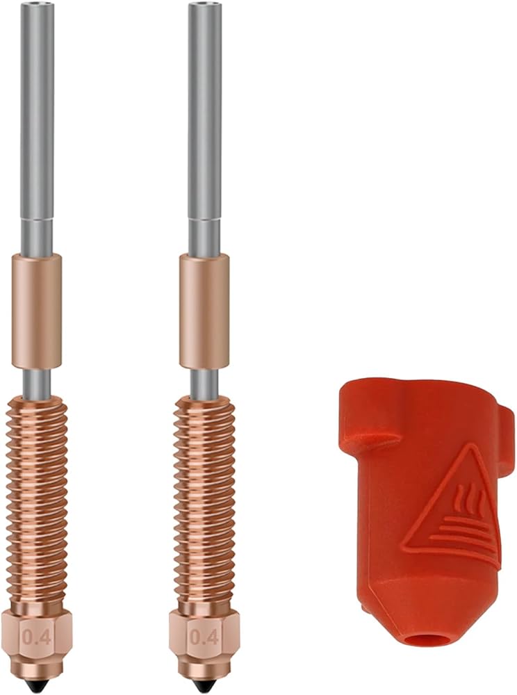 قطعتان من فوهة K1C مقاس 0.4 مم، فوهة يونيكورن سريعة التبديل مع كسر حراري من سبائك التيتانيوم، وسبائك نحاسية وفوهة فولاذية صلبة لـ K1C/Ender3 V3/K1max مع قطعة واحدة من جورب السيليكون