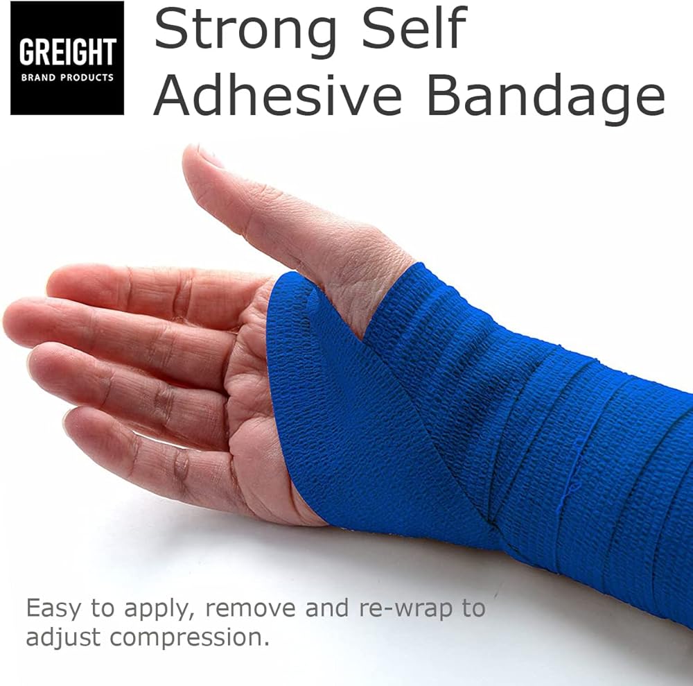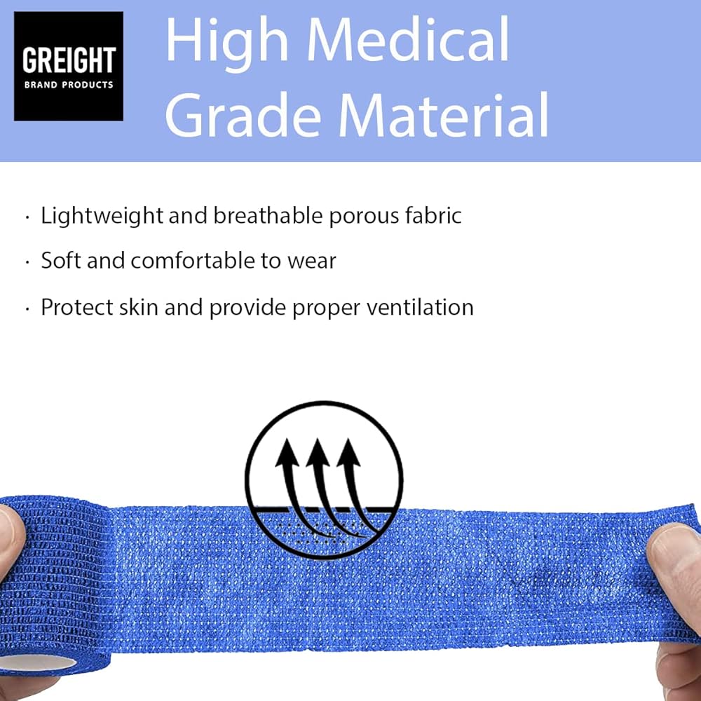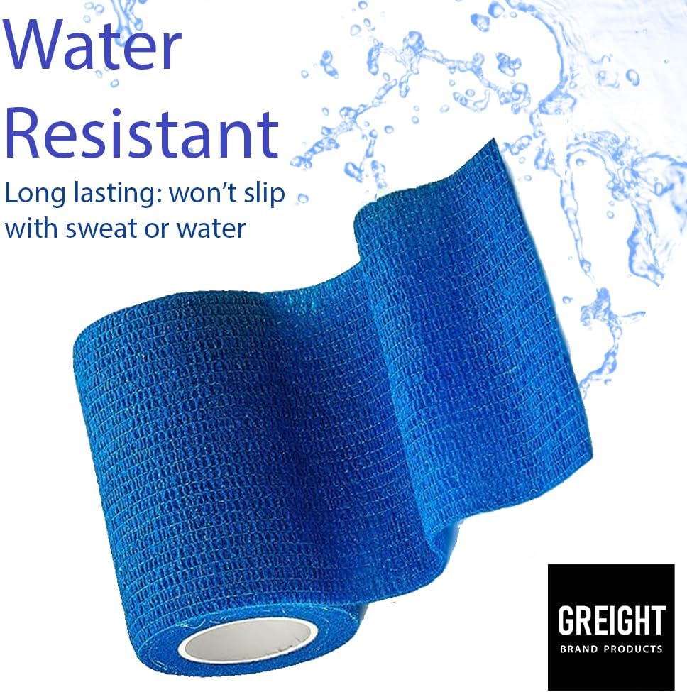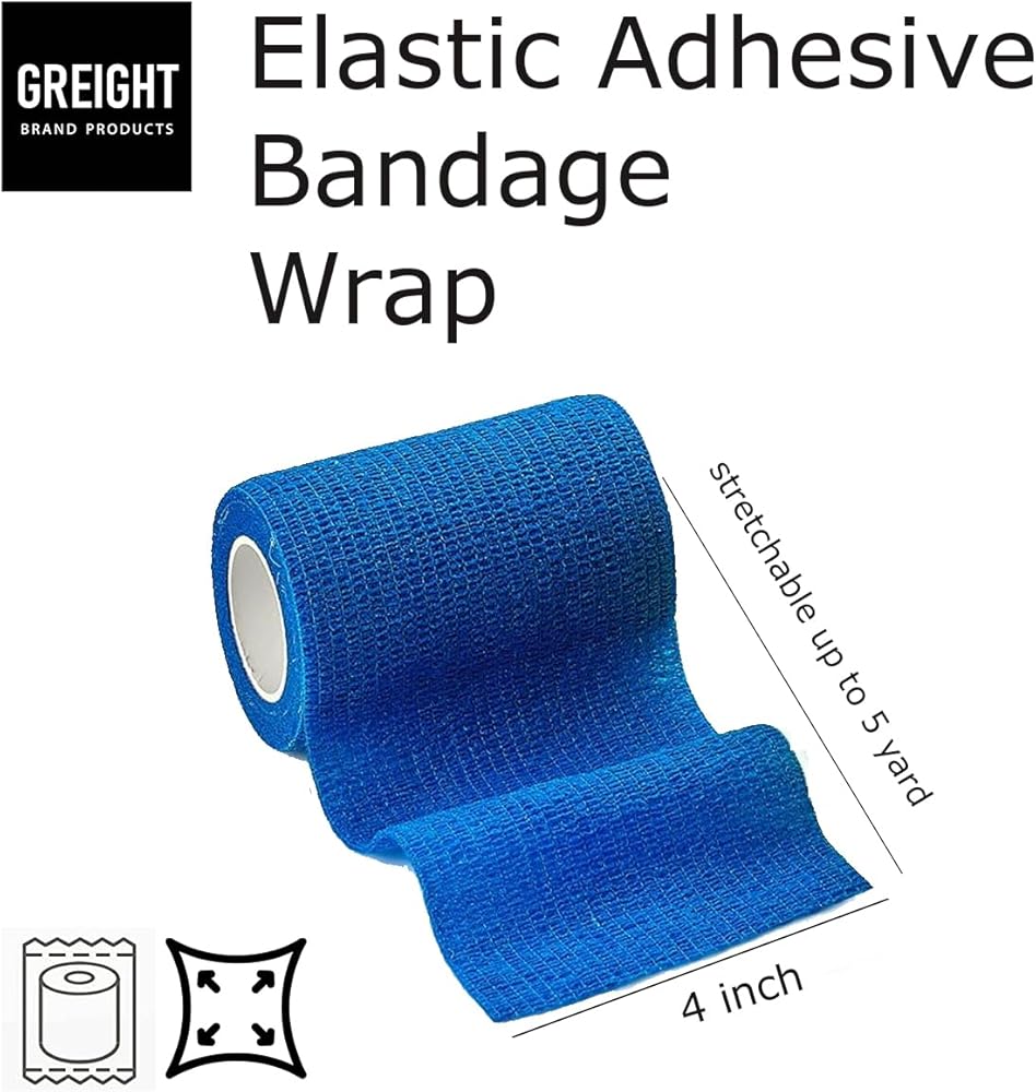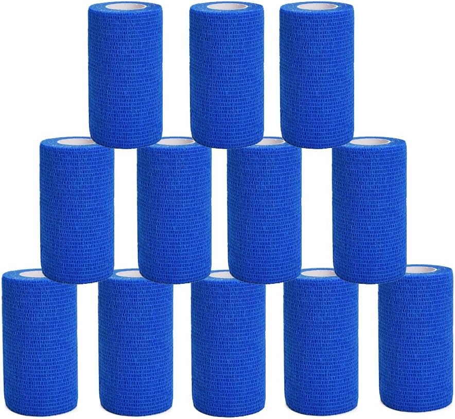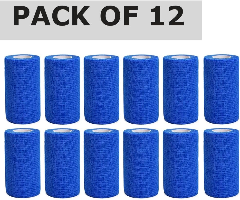 • قيمة إضافية: تأتي العبوة مع 12 لفة مع ضمادات ملفوفة زرقاء ذاتية اللصق بعرض 10.16 سم، وطول 5 ياردات لكل لفة. كمية كافية للاستخدام اليومي والاستبدال.