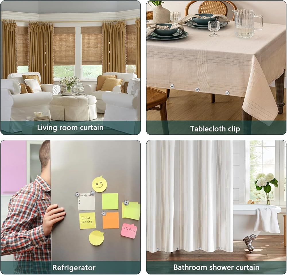 • Easy Installation and Use - Effortlessly attach these magnetic curtain clips to any position on your curtains without the need for any tools. Simply pinch the button and secure it in place. Enjoy a hassle-free experience!