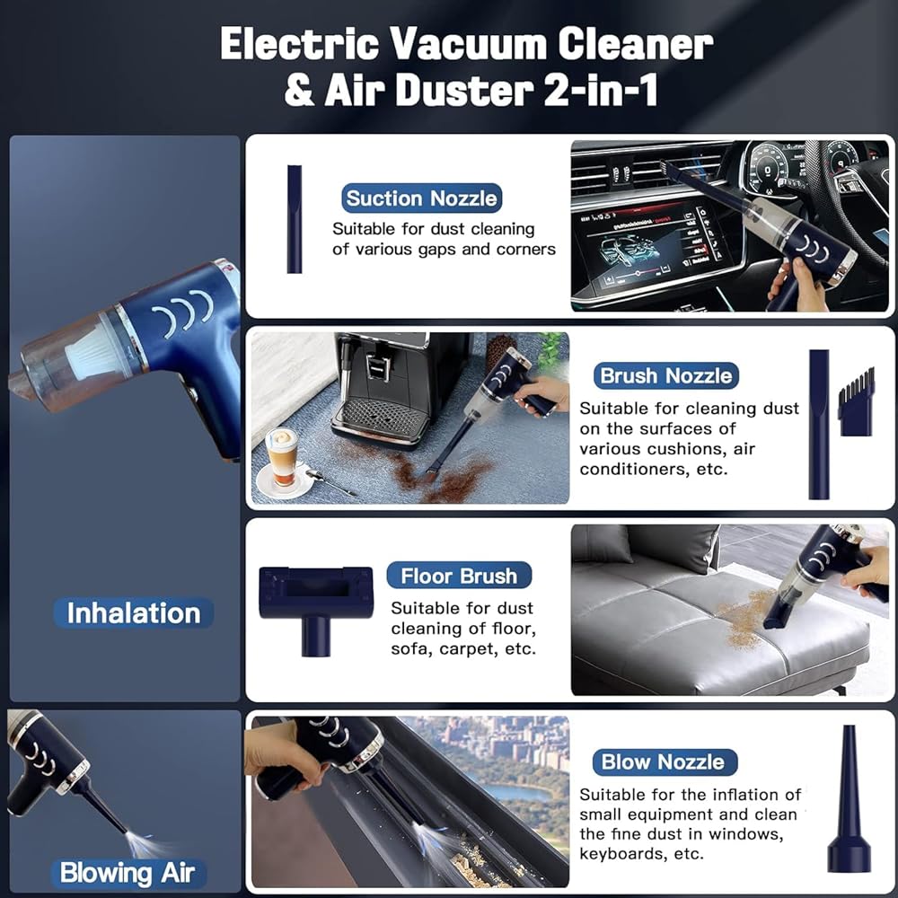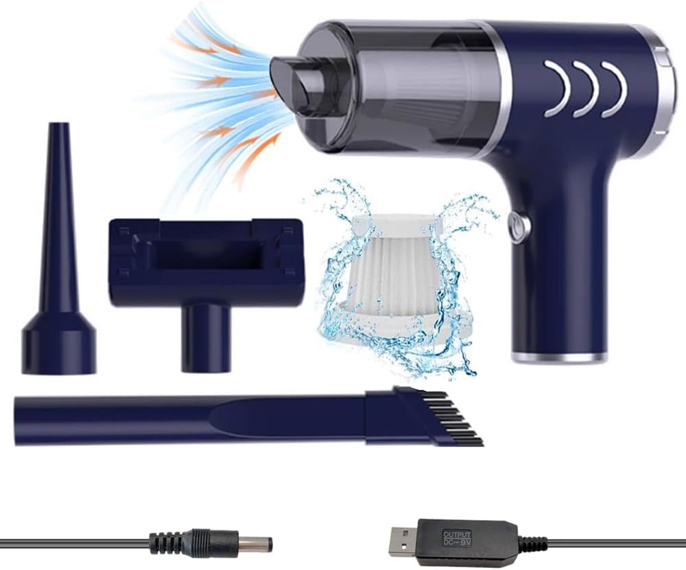 ⚡【منفضة هواء قوية ومكنسة كهربائية 2 في 1】تتمتع المكنسة الكهربائية لدينا بوظيفتين: يمكنها أن تمتص أو تنفخ. يمكنك استخدامه لإزالة الأوساخ والحطام والغبار والجسيمات الأخرى بسهولة من سطح العناصر الخاصة بك، وكذلك لامتصاص الأوساخ العنيدة الصغيرة المخفية في لوحات المفاتيح والزوايا والشقوق. الوظيفة القوية لمجمع المكنسة الكهربائية تجعل الغبار في جميع الأماكن ليس له مكان للاختباء ويجعل جميع العناصر الخاصة بك تبدو جديدة.