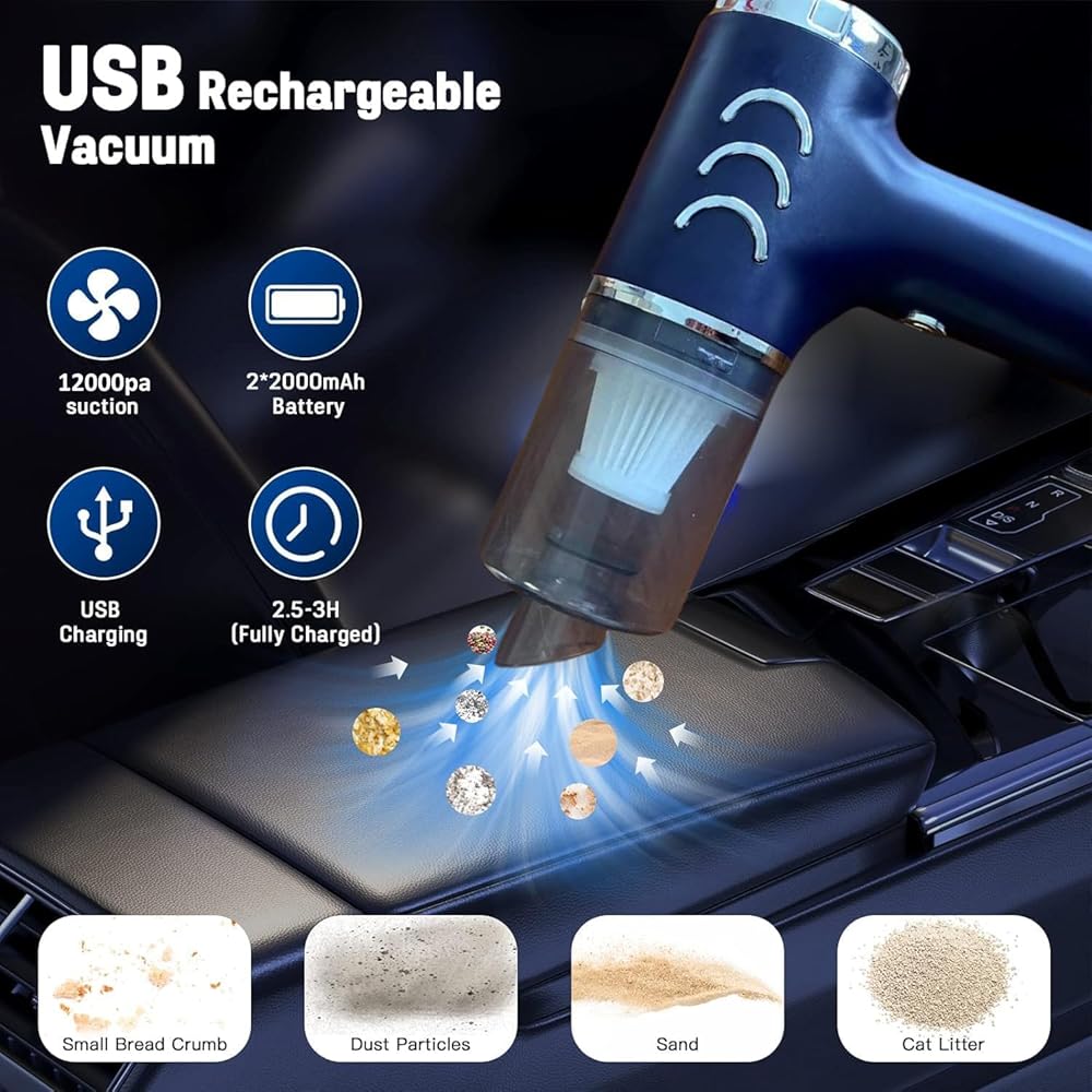 ⚡【منفضة هواء قوية ومكنسة كهربائية 2 في 1】تتمتع المكنسة الكهربائية لدينا بوظيفتين: يمكنها أن تمتص أو تنفخ. يمكنك استخدامها لإزالة الأوساخ والحطام والغبار والجسيمات الأخرى بسهولة من سطح ✅ مكنسة كهربائية يدوية خفيفة الوزن لاسلكية: مكنسة السيارة هذه مريحة جدًا للحمل، وتزن فقط 0.73 رطل (333 جم) وتتمتع بقوة شفط تبلغ ما يصل إلى 9000 باسكال. يتيح لك تصميم المكنسة الكهربائية اللاسلكية التحرك بحرية أثناء تنظيف زوايا منزلك أو سيارتك أو مكتبك. مزودة بإضاءة LED لسهولة تنظيف الغبار في الزوايا المظلمة.
