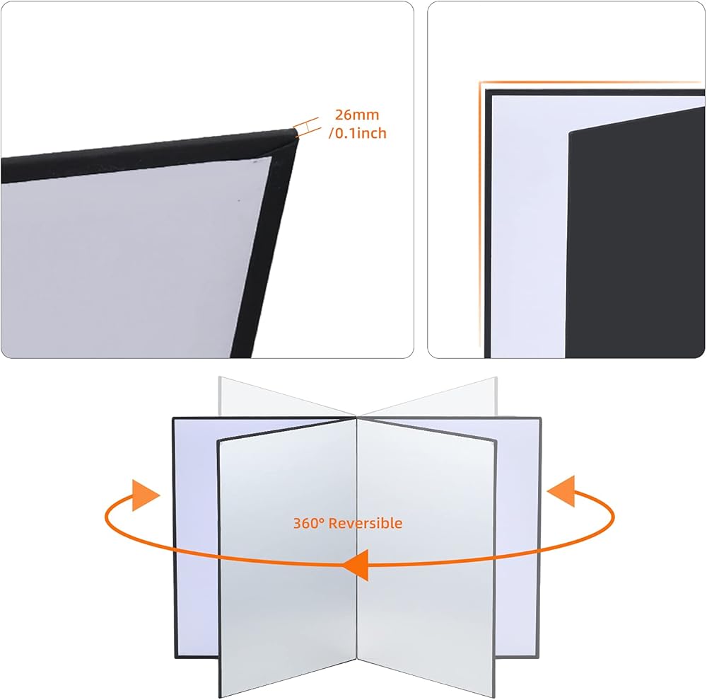 سهل التخزين والحمل: يمكن طي عاكس التصوير الفوتوغرافي هذا ككتاب لسهولة حمله، أو تخزينه على مكتبك بطريقة غير مزعجة (الوزن: 389 جم، الحجم المطوي: 11.7 × 16.6 × 0.2 بوصة)