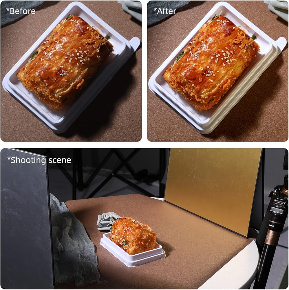 التطبيق: يمكن استخدامه كعاكس أو كخلفية مؤقتة. مثالي لموزع التصوير الفوتوغرافي للطعام أو موزع التصوير الفوتوغرافي للمنتج.