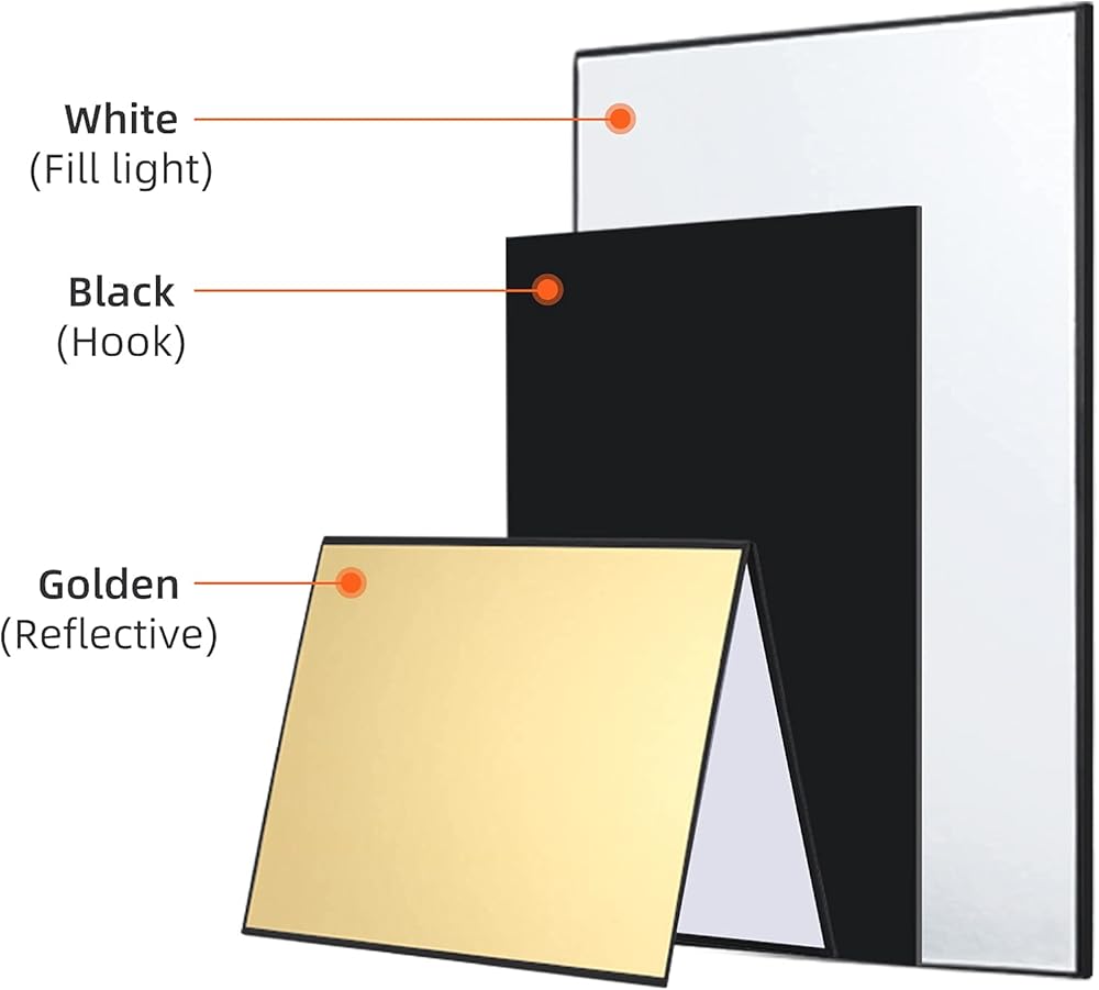 قطعتان من عاكس الضوء: سطح فضي وذهبي وأبيض وأسود، يمكن استخدام كل من الأمام والخلف، ويمكنك دائمًا الحصول على التأثير الذي تريده