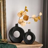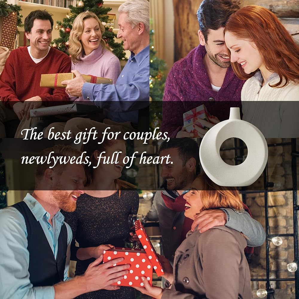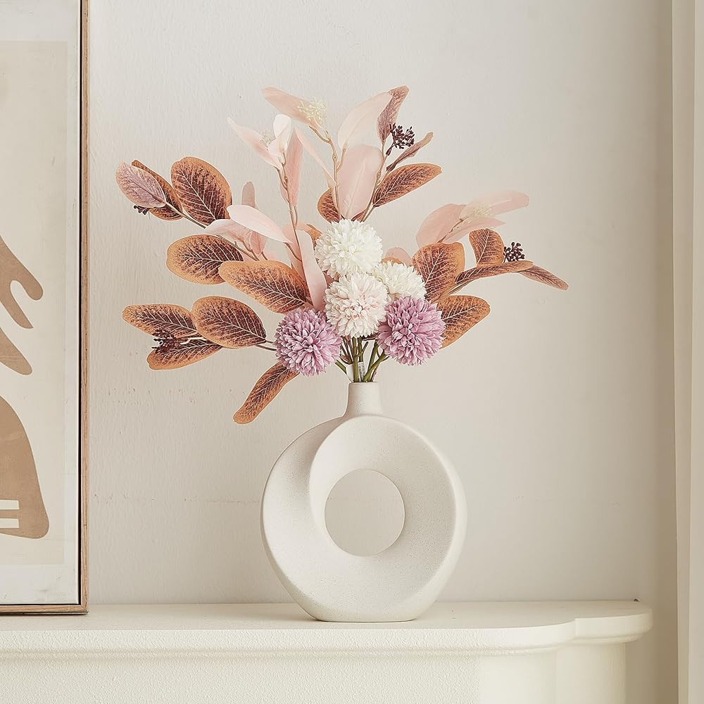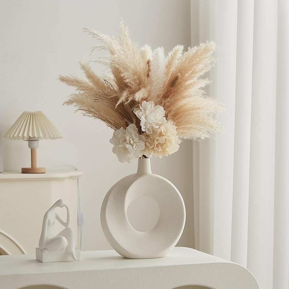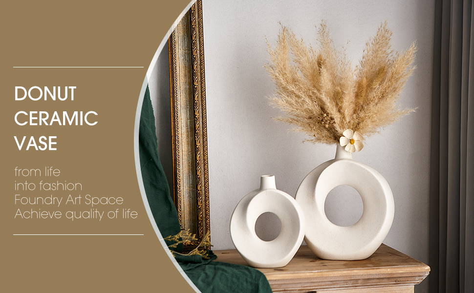 Product Benefit: Decorate your home with these modern white ceramic donut vases that add a touch of boho charm to any space. Set of 2 hollow flower vases perfect for displaying fresh blooms or vibrant faux flowers.
