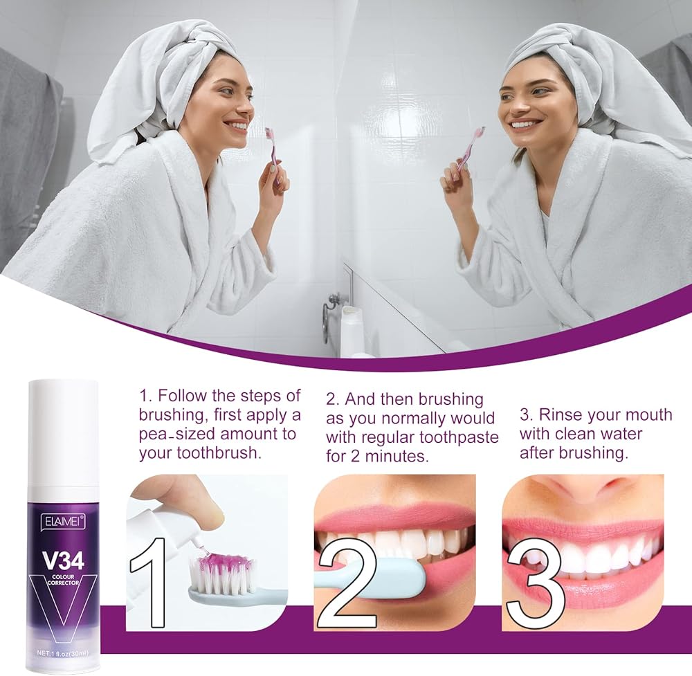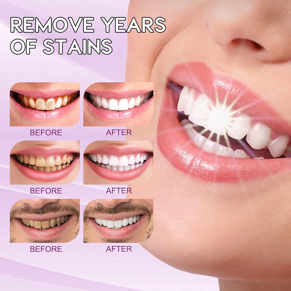 • 【Deep Clean Teeth】Purple teeth whitening toothpaste penetrates the gaps in the enamel to remove food particles and deep stains embedded in them. Leave no residue, help effectively clean your teeth and make your smile more beautiful.