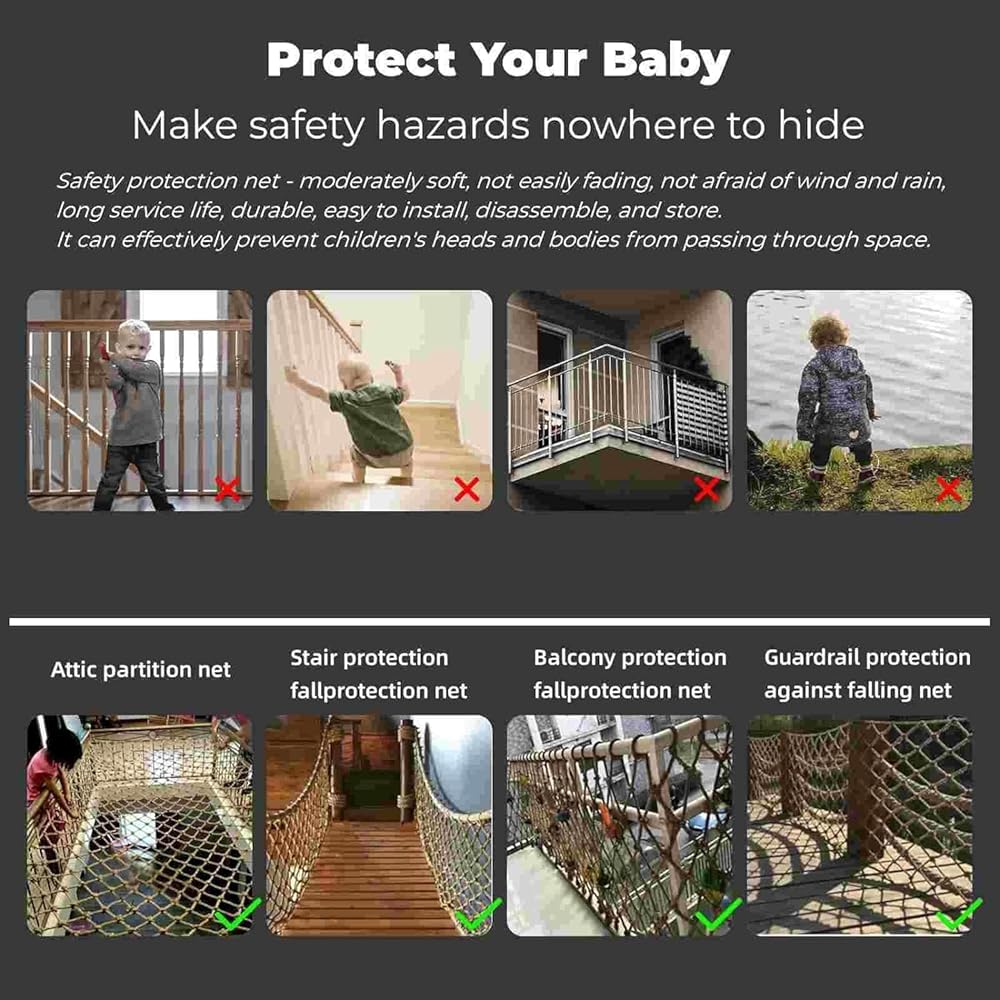 • 【شبكة حماية السلامة】لا تندمج شبكة حبال القنب الخاصة بنا بشكل متناغم مع البيئة في المظهر فحسب، بل الأهم من ذلك أنها تعمل بشكل جيد من حيث الحماية. يوفر حواجز حماية إضافية للأطفال وكبار السن والحيوانات الأليفة، ومناسبة لتثبيت درابزين السلالم والشرفات والسندرات وشبكة حبل القنب.