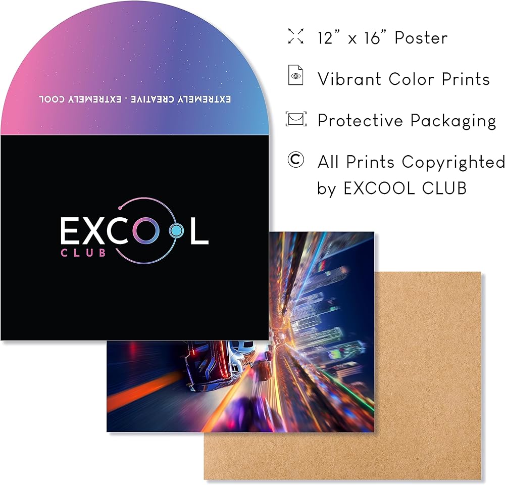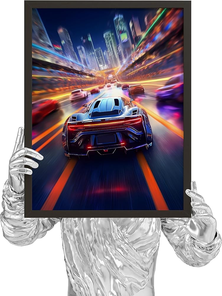 SET INCLUDES: Every purchase comes with a 12x16" poster featuring stunning Car Pictures. An adrenaline-fueled blend of Cars Painting and Neon Sports Car Poster that will captivate any viewer, complementing any home or office interior.