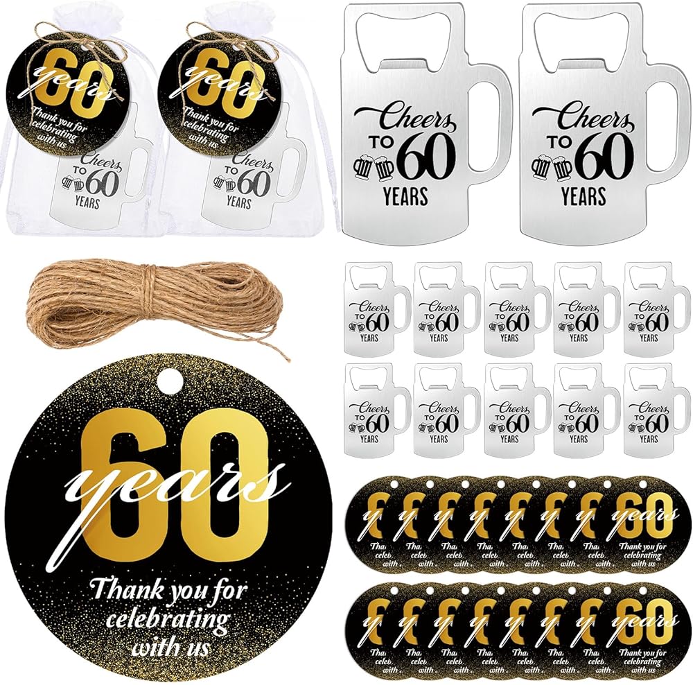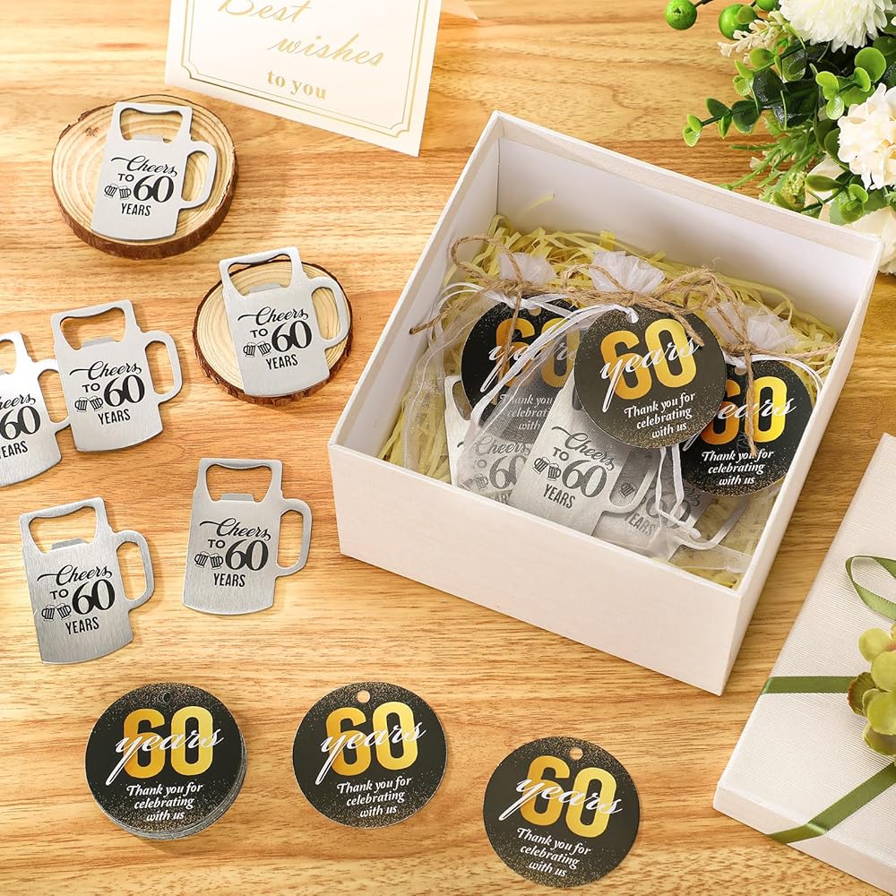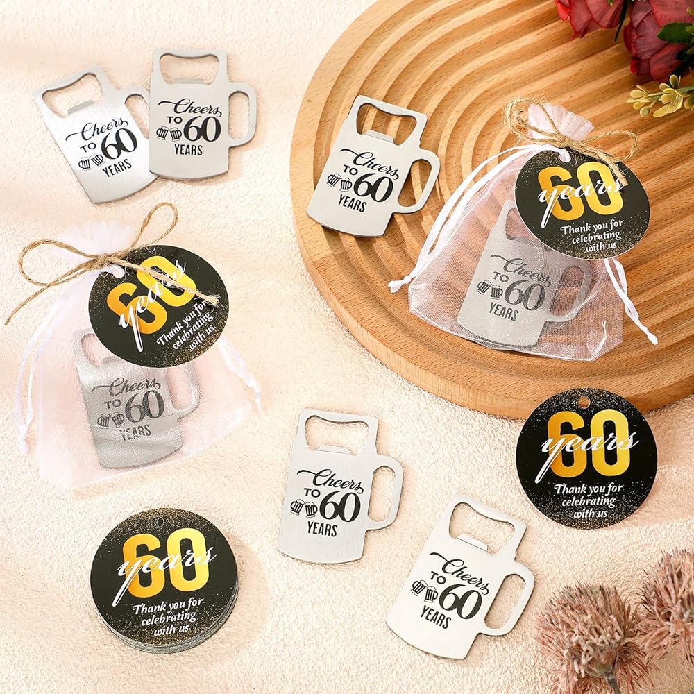 The 50th anniversary decorations are made of quality materials that are designed to be as memorable as the occasion itself. The bottle opener, a fun souvenir with practical use, is made of durable metal, maintaining its sheen without losing sturdiness. The thank you cards, crafted from coated paper, have a smooth and classy finish, providing ample space for your sincere message. And the organza bags elegantly showcase the guest favor, enhancing the aesthetic appeal of your celebration.
