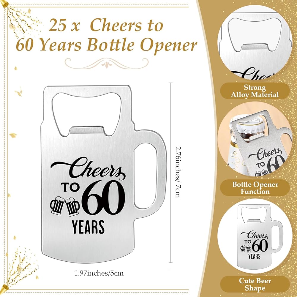 The metallic sheen of the bottle opener party favors blends harmoniously with the color of both the card and bag. The nuanced interplay of color brings a touch of elegance that is bound to leave your guests impressed. The symphony of color is ideal to compliment your 50th birthday or 50th anniversary event.
