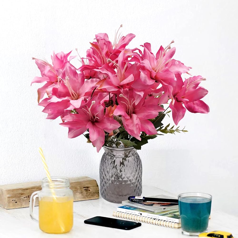 【 ديكور في أي مكان/في أي وقت 】-زهرة الزنبق الصناعية (ارتفاع 17 بوصة) مثالية لتزيين المنزل والمقاهي والمكاتب والفناء والمسرح وممرات الكنيسة وحفلات الزفاف وحفلات استقبال الأطفال والمزيد. عناصر مهمة أيضًا في حفلات الزفاف والحفلات والمناسبات الأخرى حتى أنه هدية جيدة في عيد الأم، وعيد الميلاد، وعيد الحب، وعيد الشكر، والعام الجديد وما إلى ذلك