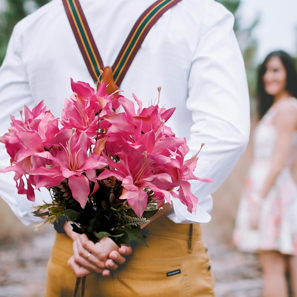 【 قابلة للانحناء للاستخدام بنفسك 】- جذع زهور شجيرة الزنبق الحريرية مصنوع من سلك فولاذي صديق للبيئة، لذلك يمكن ثنيها بحرية، مما يجعلها مثالية لترتيب الزهور - تتماشى مع زنابق النمر ذات الألوان المختلفة أو أي نوع آخر من الزهور. يمكنك الجمع بين قلبك وصنع باقة خاصة بك
