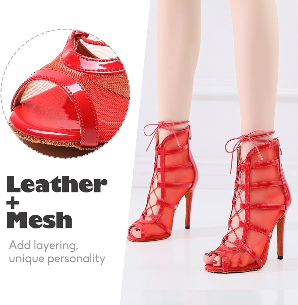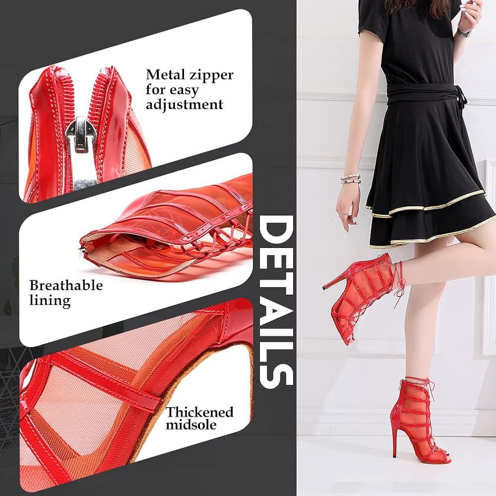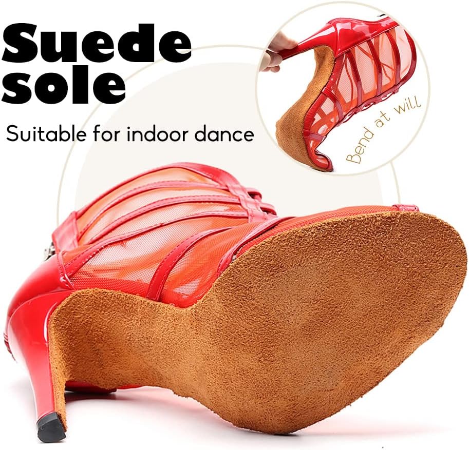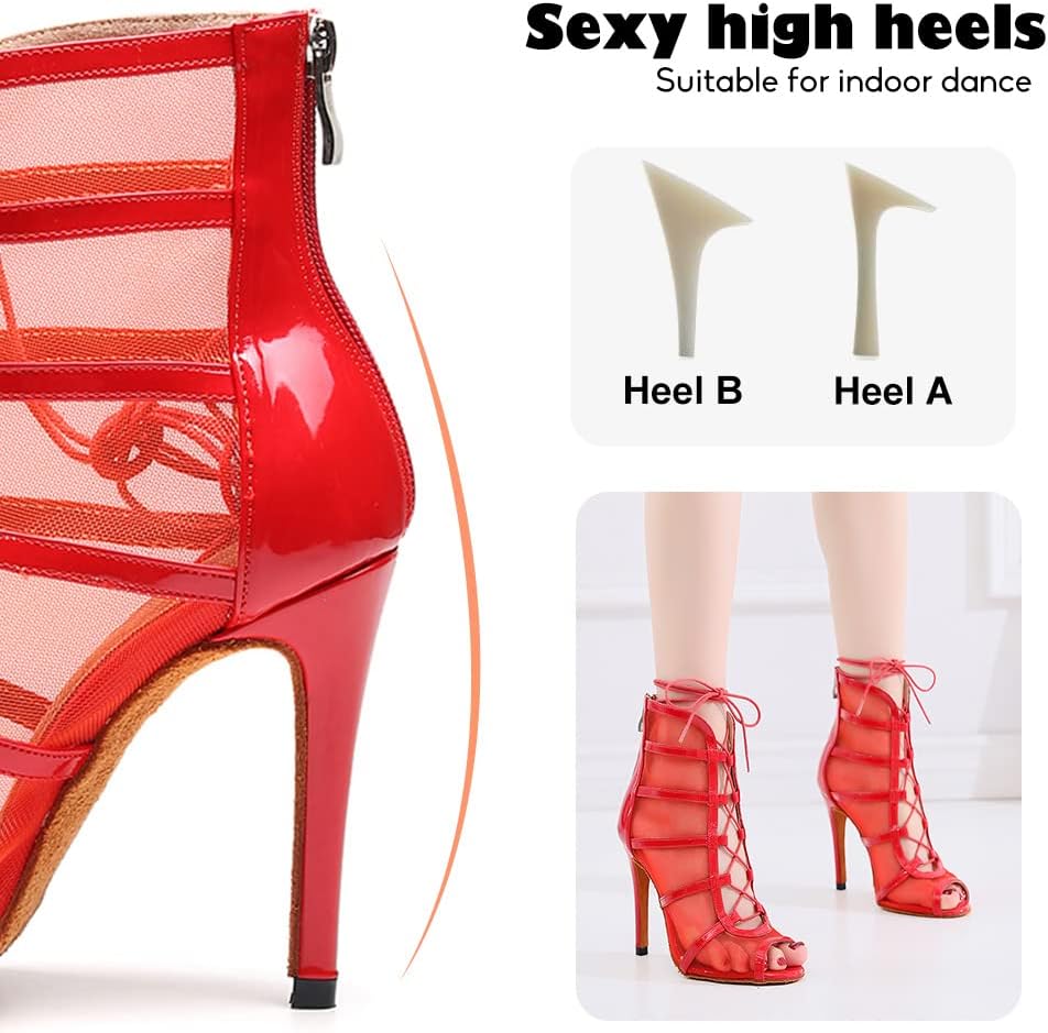 أحذية YKXLM للرقص اللاتيني السالسا للنساء برباط للكاحل مفتوح عند الأصابع، كعب 1023، 3.33 بوصة، أسود، 9 US