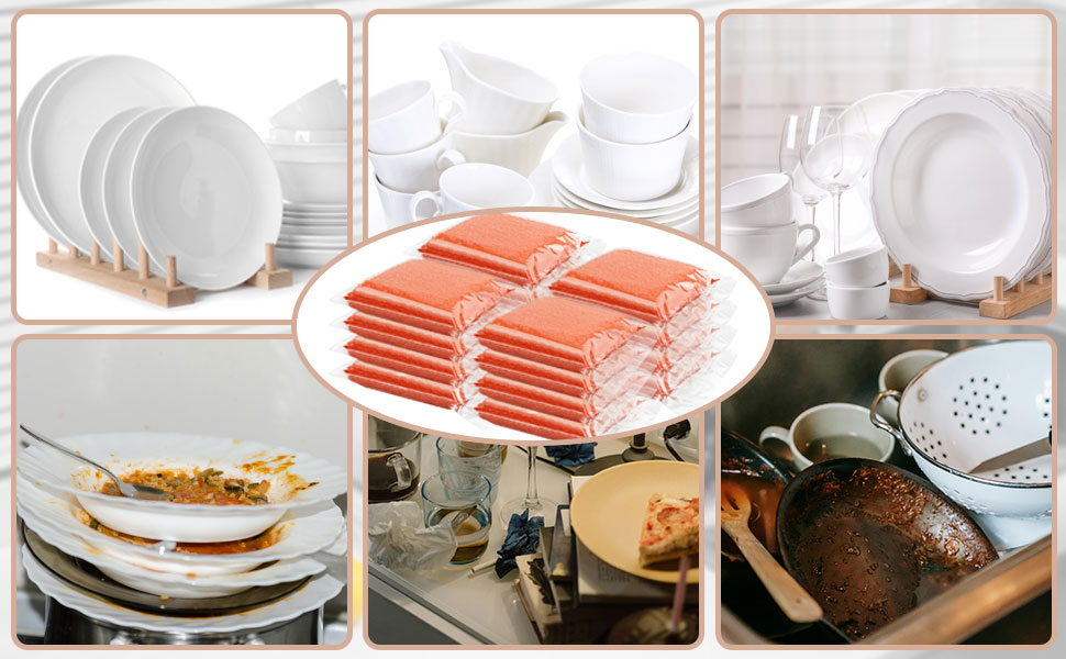 • تطبيق واسع: يمكن استخدام اسفنجات الأطباق لغسل الأطباق. يمكن استخدامها أيضًا كفرشاة للفواكه والخضروات لتنظيف أوساخ الفواكه والخضروات بسرعة.