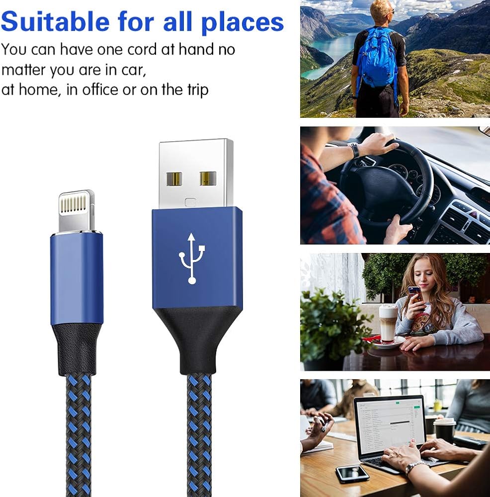 【Perfect Lengths】: Perfect (3/3/6/6/10 FT) feet extra long iphone charger cable free up your charging time, no more being stuck to wall socket, you can use freely in your bedroom, office, and even in the backseat of your car.
