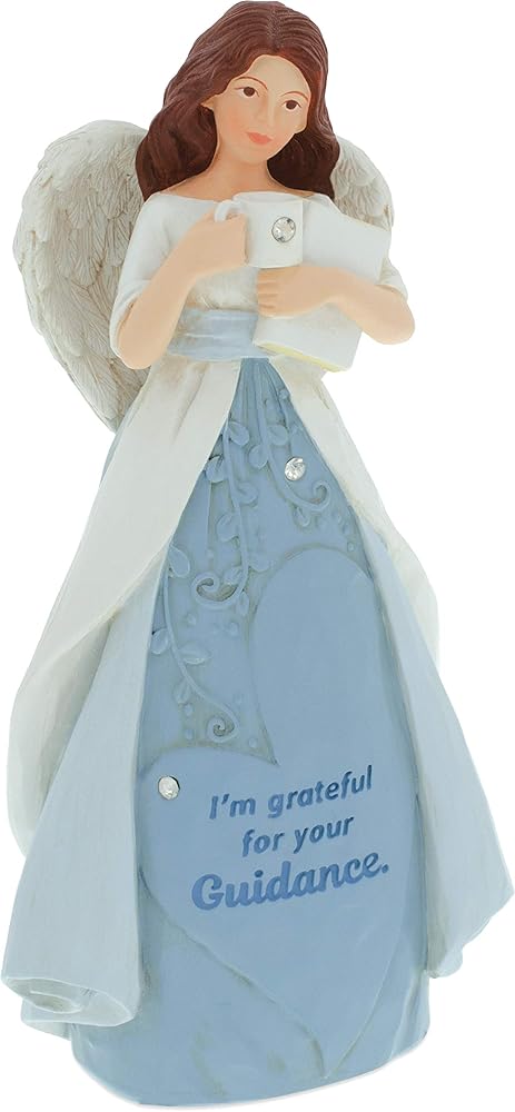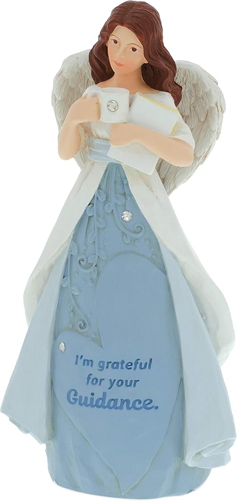 Each Heart of AngelStar Figurine is uniquely detailed for every special moment in your life. This sky blue Angel is holding a notebook and coffee cup with a glittering rhinestone. Her skirt reads “I'm grateful for your Guidance” and her heart-shaped wings are a subtle reminder of love. This serene beauty is wonderful way to celebrate the Angels in your life.
