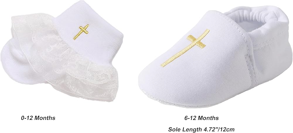 Comfortable Material: These baby baptism shoes and socks is soft, breathable and lightweight, Very comfortable to wear.