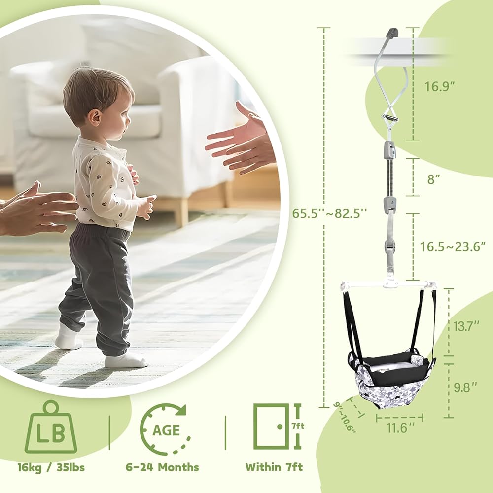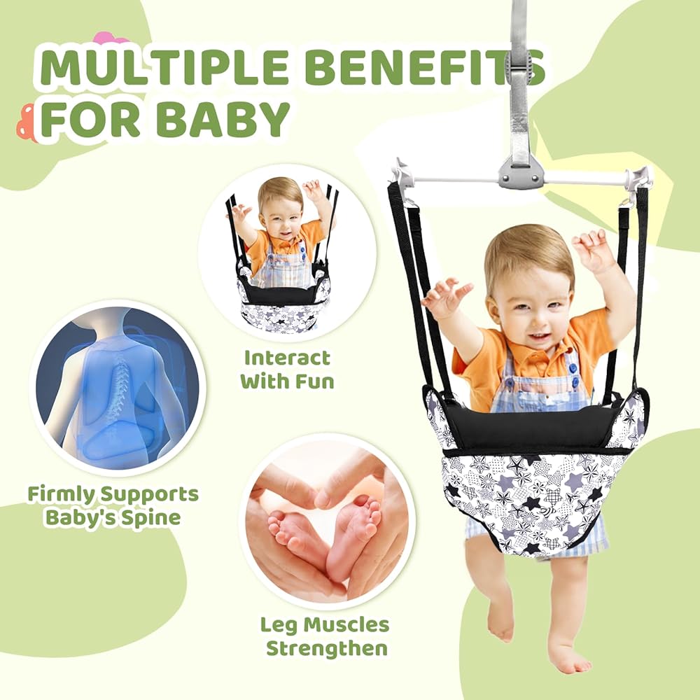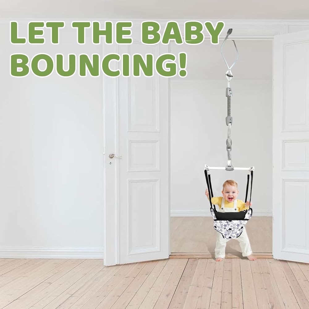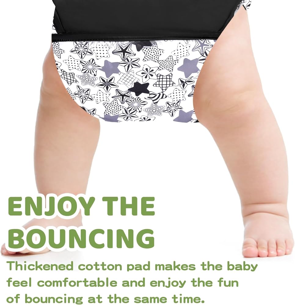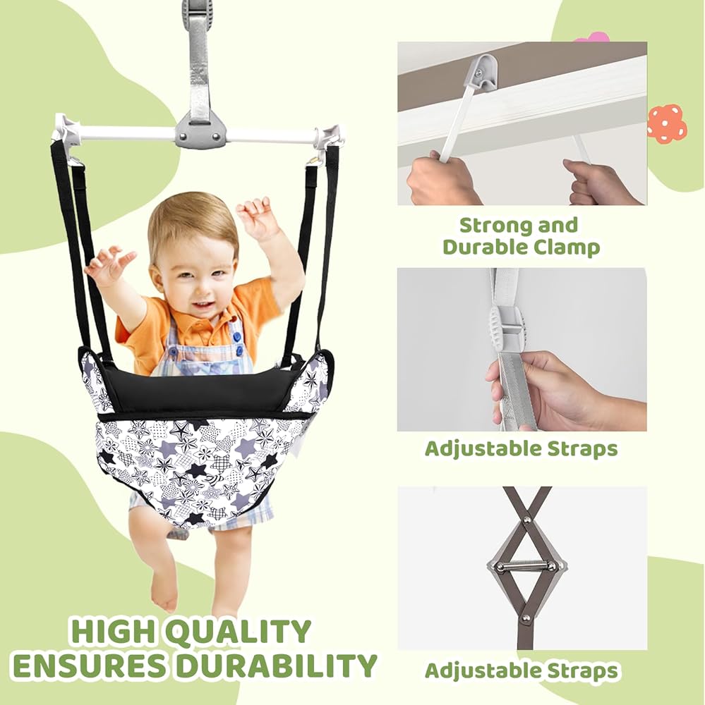 • يتم تثبيت مشابك دعامة قوية بشكل آمن على المداخل. زنبرك حارس عالي الجودة مع سلك أمان مخفي لمزيد من الأمان. أحزمة قابلة للتعديل وحقيبة مقعد صديقة للبشرة تحافظ على راحة الطفل أثناء الاستمتاع بالقفز.
