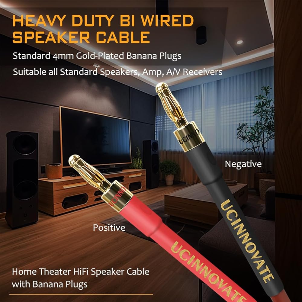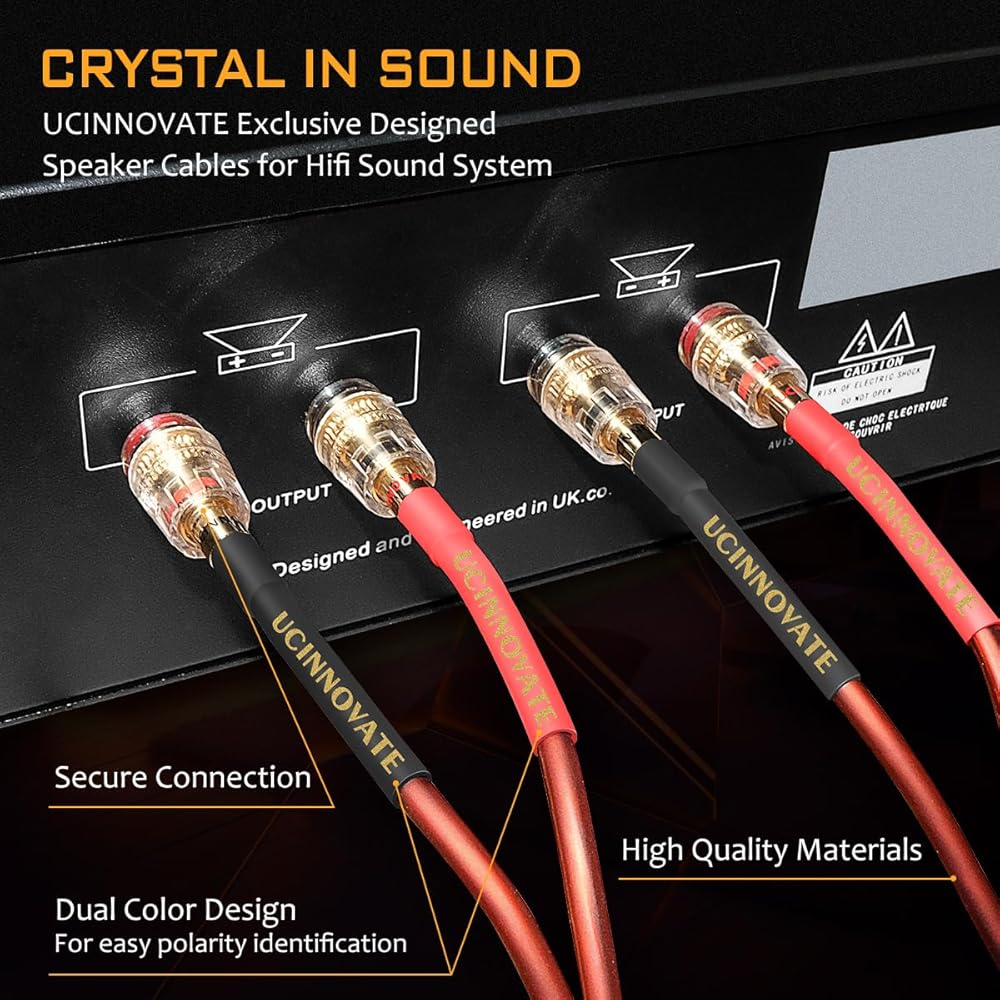 أسلاك مكبر صوت مصنوعة بطول 9.8 أقدام/3 أمتار: تم تجميعها يدويًا بدقة باستخدام أنابيب قابلة للانكماش بالحرارة، وقد تم تصميم كابلات السماعات المزودة بقوابس الموز لتوفير نقل إشارة صوتية من الطراز الأول ومتانة رائعة. يمنع شريط القطبية الأحمر والموصلات المرمزة بالألوان أي أخطاء في الاتصال، مما يجعل هذه الكابلات الصوتية المثالية لمكبرات الصوت.