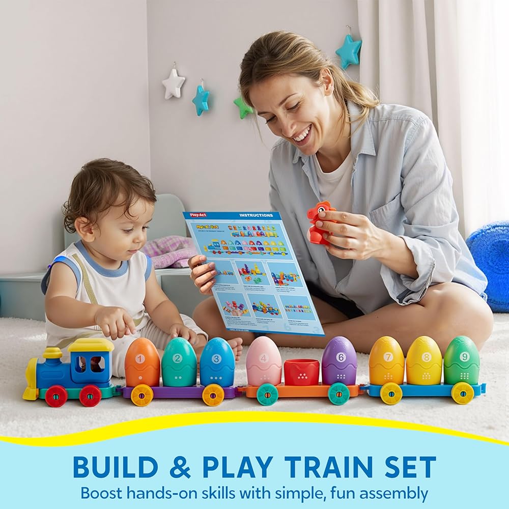 تجربة فرز ملونة: استكشف الألوان والأرقام بينما تستمتع بنشاط الفرز النابض بالحياة مع 10 حظائر مرقمة و4 عربات عربة ملونة، جميعها تجرها قاطرة.