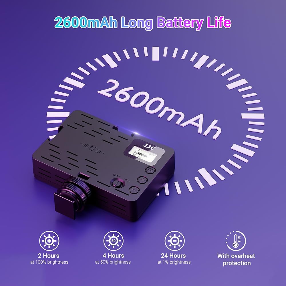JJC 2600mAh Magnetic RGB LED Light Flash Attachment for Sony ZV-E10 II ZVE10 ZV-1 II ZV-1F ZV1 ZV1F A6600 A6000, Canon EOS R100 R50 M50 & More Cameras, 2500K-8500K, 360° Full RGB, Rechargeable, Black