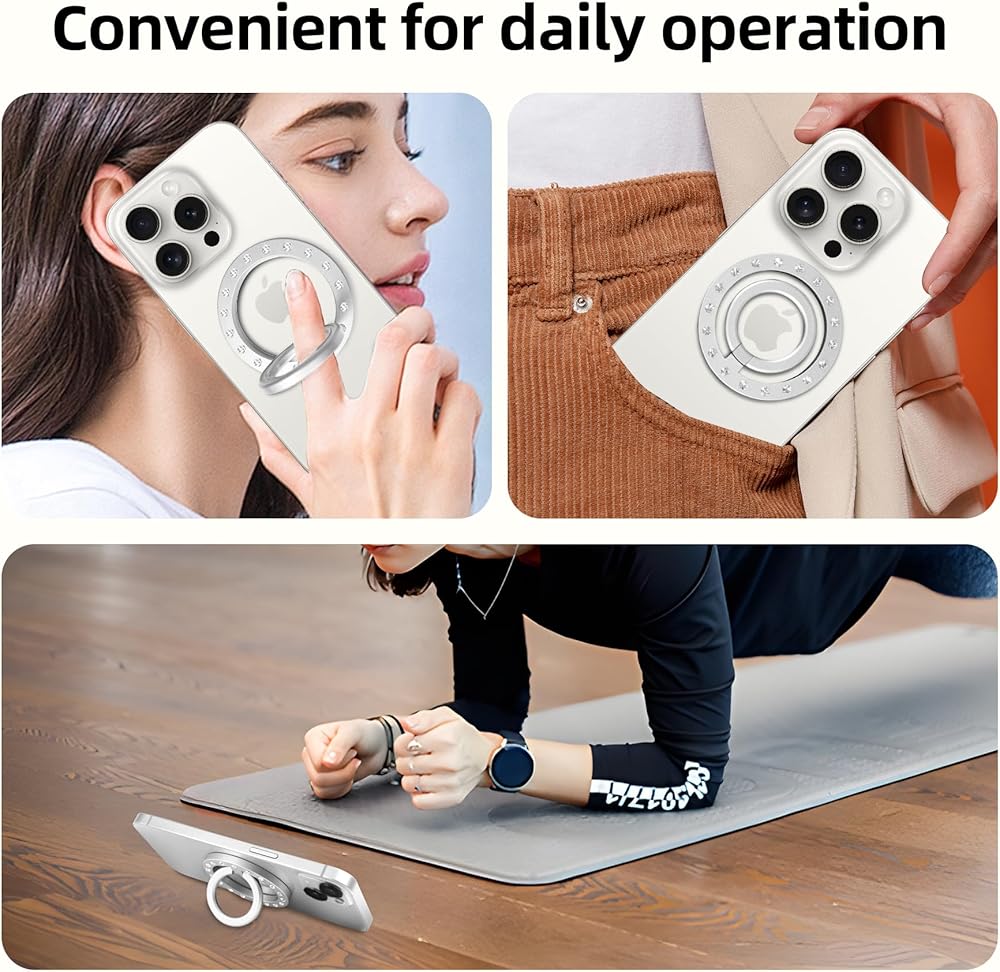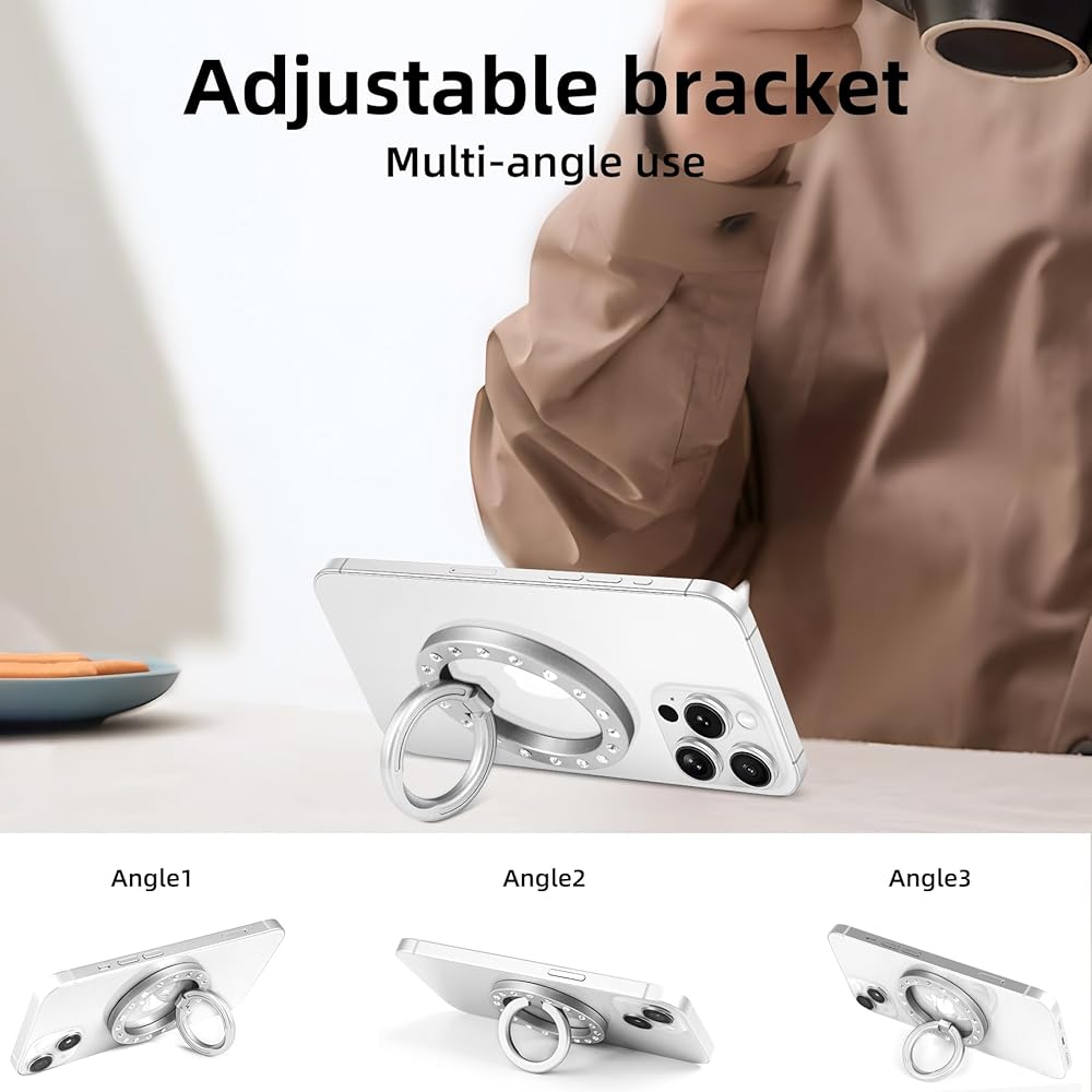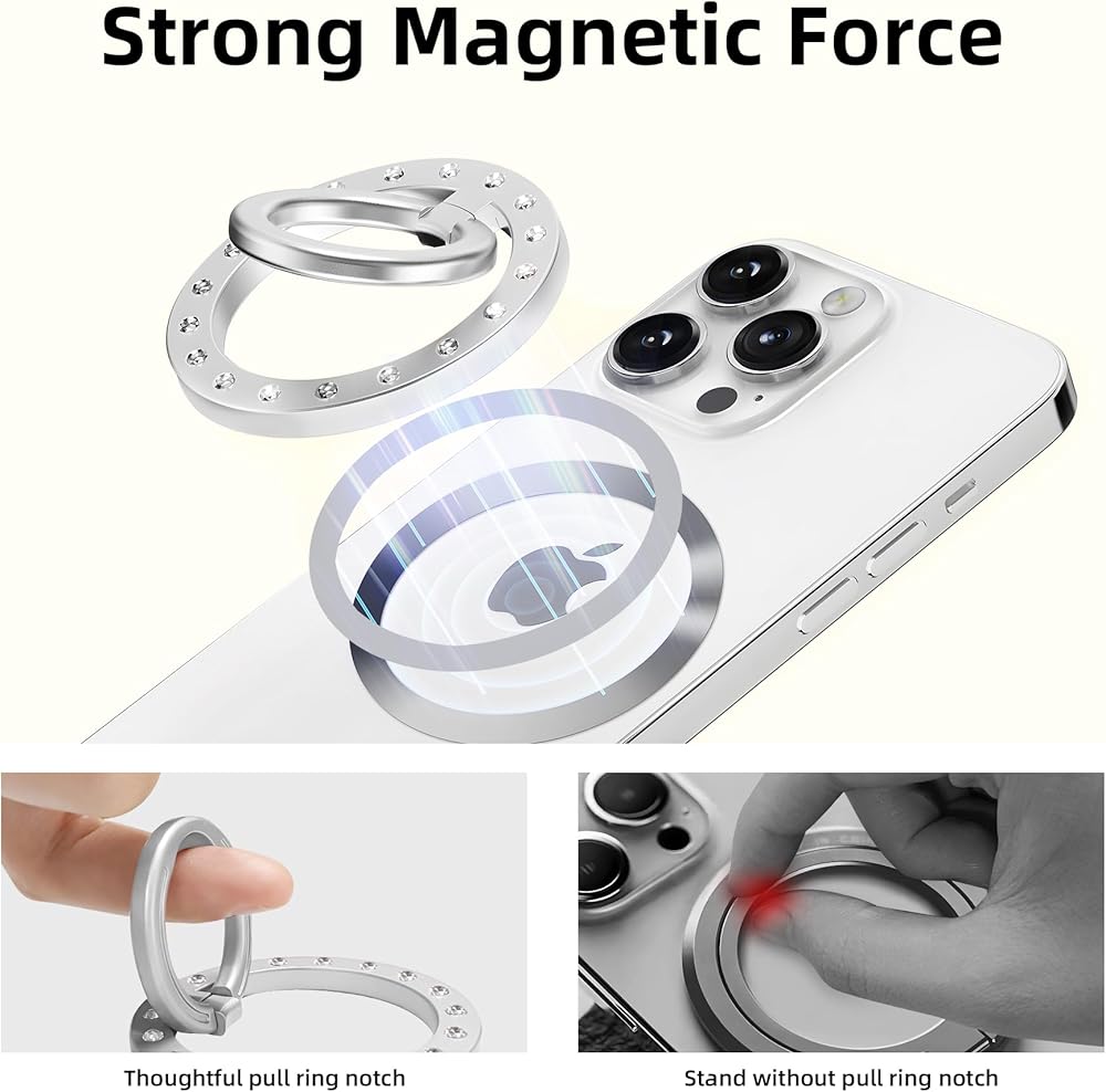 【خامة عالية الجودة】مقبض الهاتف هذا من magsafe مصنوع من مادة سبيكة جديدة عالية الجودة، ويوفر المقبض المريح للحلقة الداخلية قبضة آمنة، ويناسب إصبعك تمامًا ويحمل هاتفك بأمان.