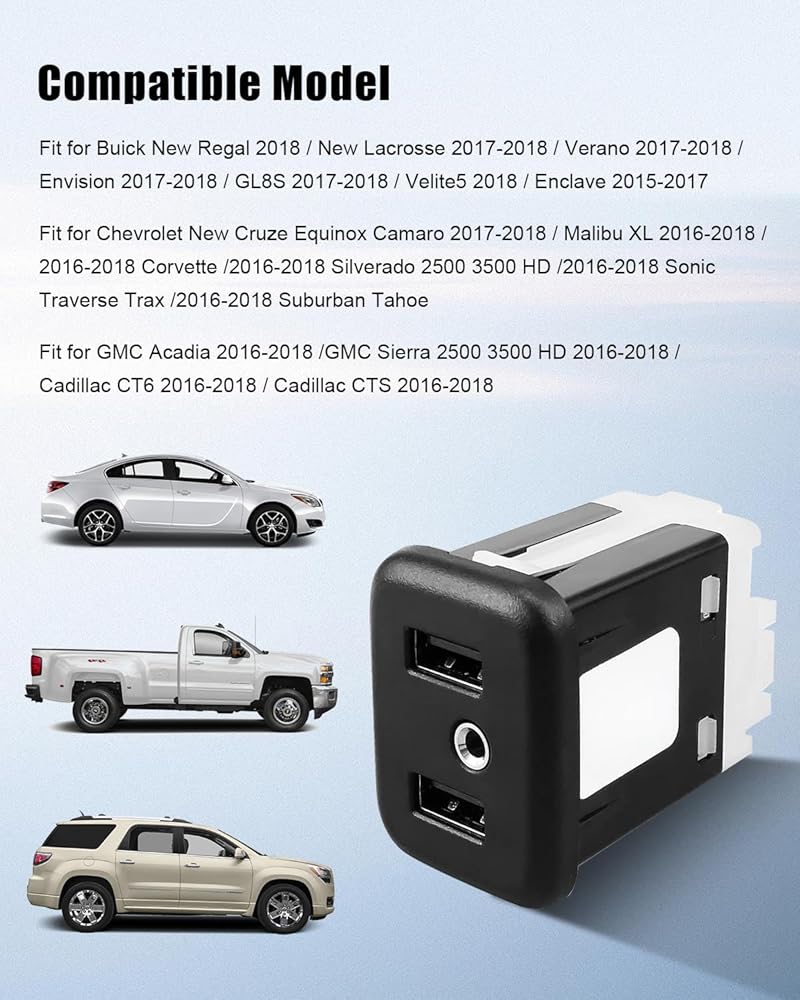 منفذ USB AUX واجهة جاك استبدال 13519224 يناسب بويك كاديلاك شيفروليه جي إم سي 2016 2017 2018، AUX Jack مشغل صوت السيارة وواجهة منفذ USB مزدوج