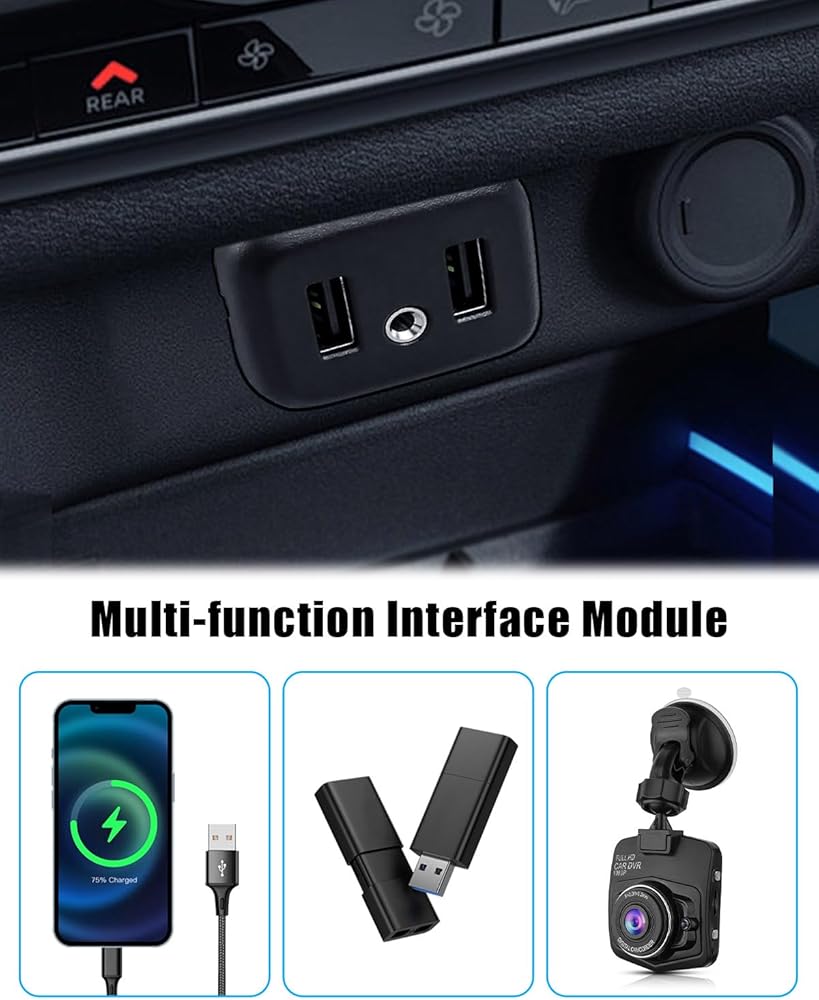 • وحدة واجهة متعددة الوظائف: واجهة AUX مدمجة ومنفذ USB مزدوج، يمكن أن تدعم اتصال الهاتف المحمول carplay وmylink، لتلبية احتياجات تشغيل الموسيقى على قرص U، وشحن الهاتف المحمول والأجهزة الإلكترونية الأخرى للسيارة، وتحسين تجربة الراحة والترفيه في السيارة. سيارة