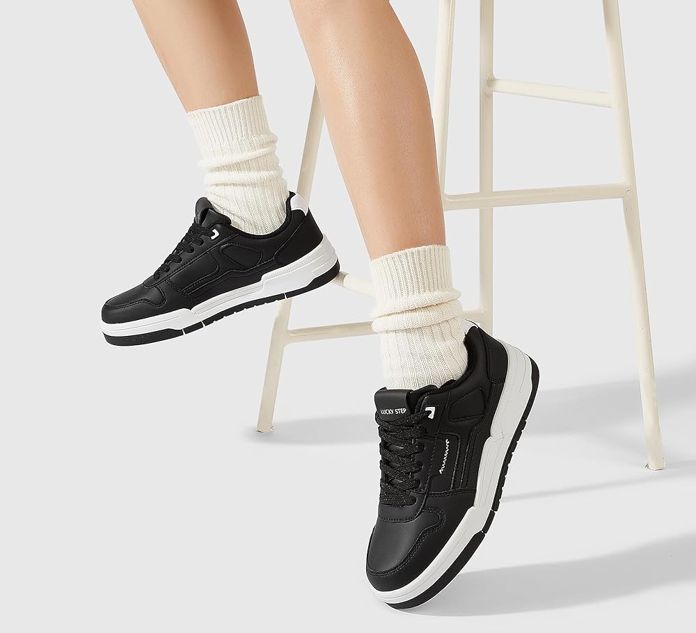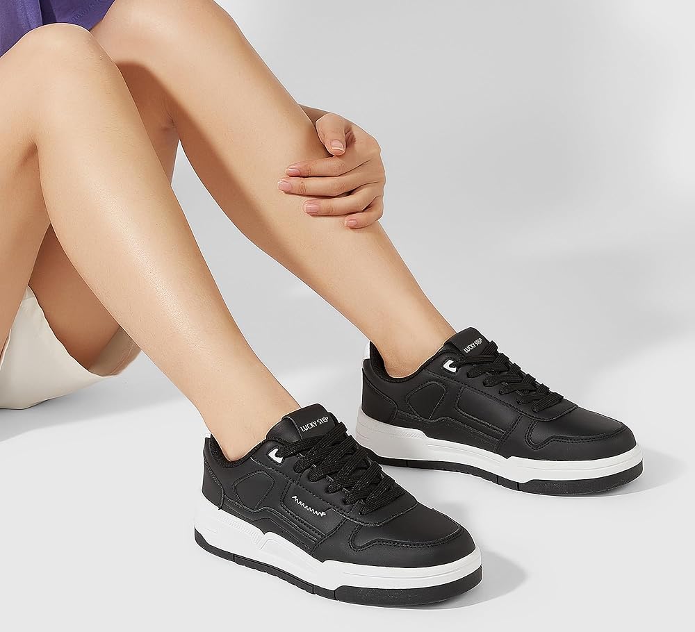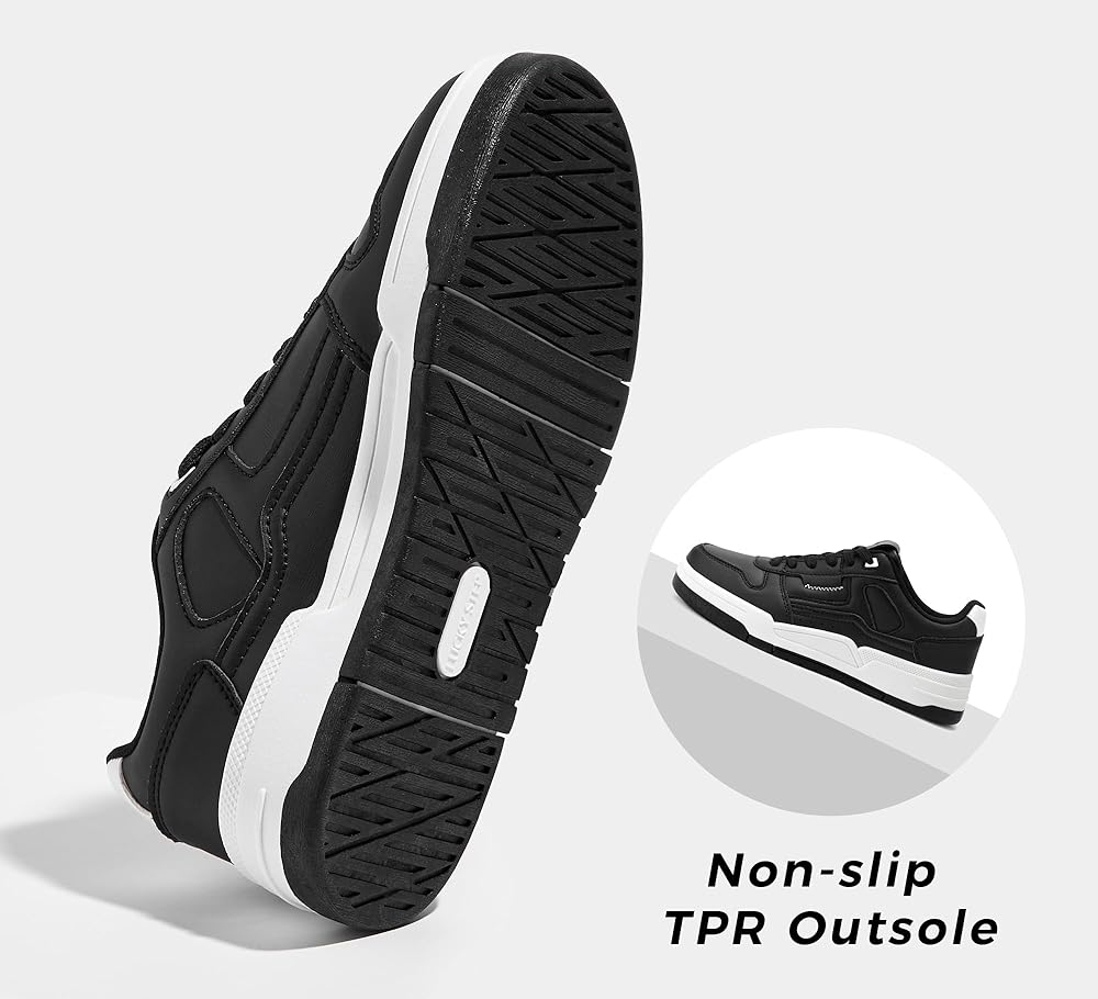 【Non-slip TPR Outsoles】Women's casual sneakers are crafted with PU leather upper and TPR outsoles. Non-slip durable outsoles offer reliable traction on various surfaces, allowing you to confidently move around without worrying about slips or falls.The smooth upper ensures easy cleaning, making them ideal for active lifestyles.