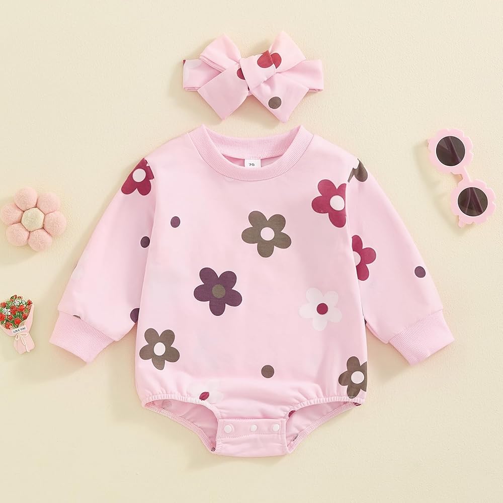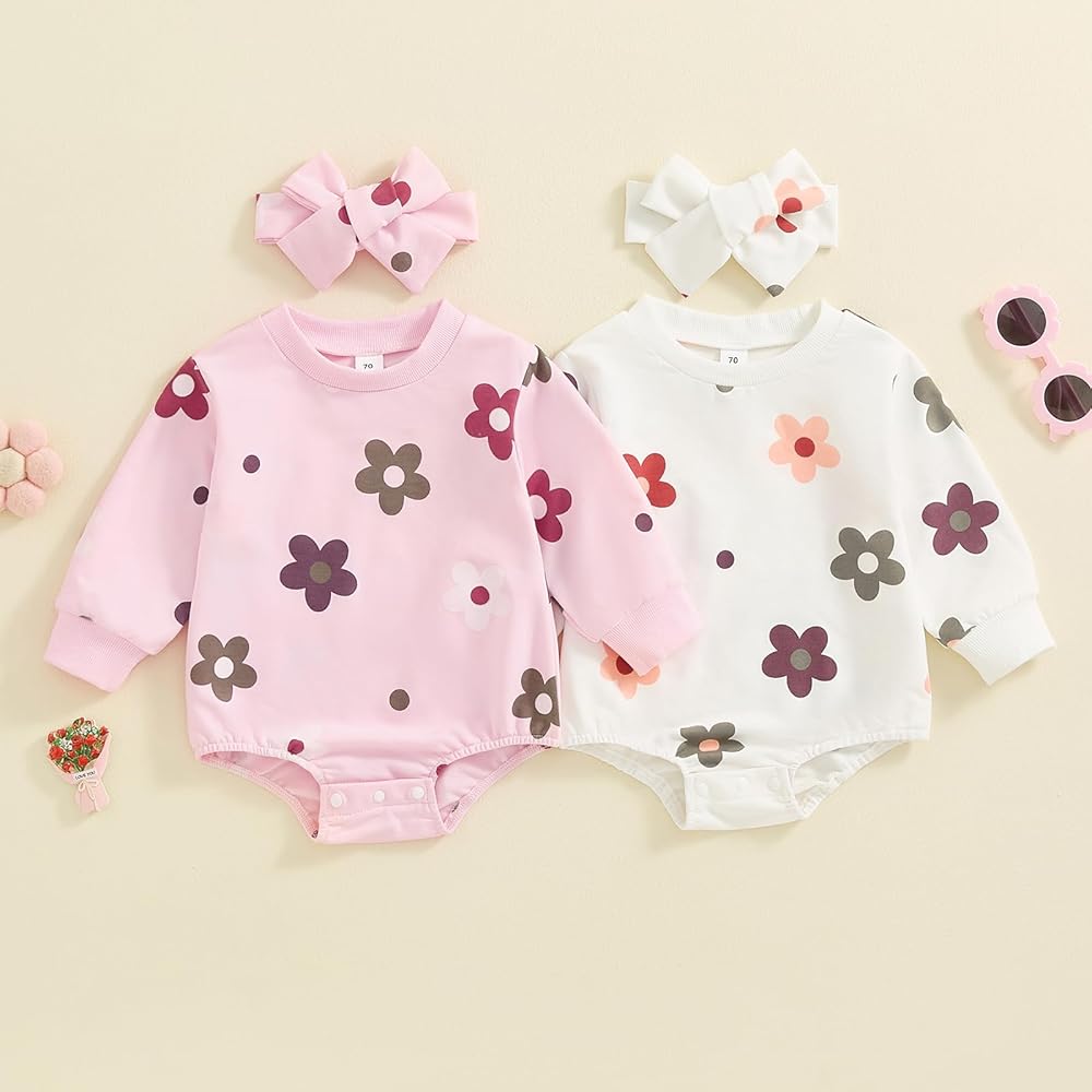 Fall Newborn Baby Clothes for Girls Floral Long Sleeve Sweatshirt Rompers Bubble Bodysuit Cute Outfits Infant Clothing