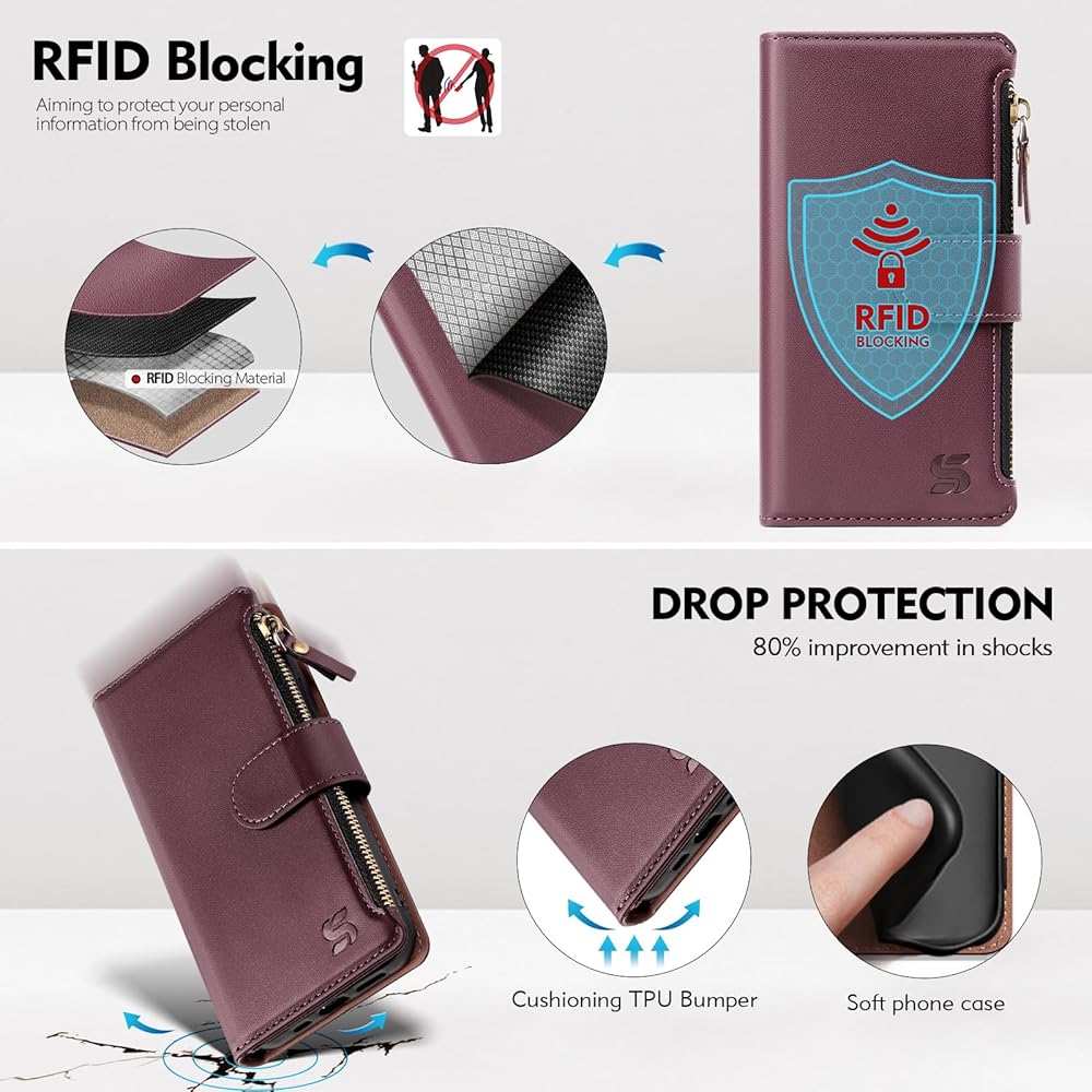 【جيب بسحاب + حجب RFID】: مع جيب بسحاب يمكنه تخزين المزيد من العملات المعدنية والتغيير، يمكنه دعم 3 حاملات بطاقات عمل مهمة لبطاقة الهوية أو فتحة بطاقة الائتمان، والجوانب الأمامية والداخلية لكل منها جيب جانبي لتخزين المال أو بطاقات العمل. يمكنه حجب إشارات RFID ومنع الماسحات الضوئية غير المصرح بها من حماية معلومات بطاقتك. تستخدم الحافظة الواقية مادة التدريع الخاصة بتقنية التدريع RFID لحماية بطاقتك من السرقة.