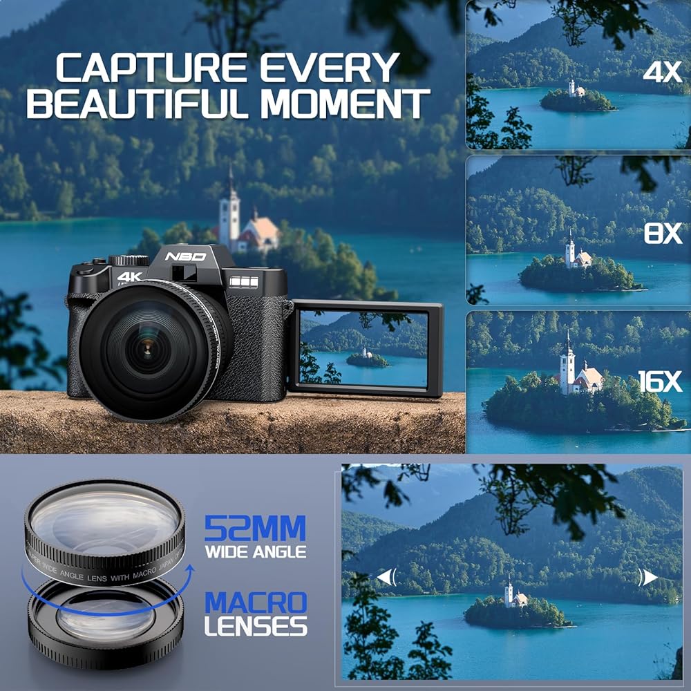 • 【كاميرا رقمية محسنة 4K مع شاشة قابلة للطي بزاوية 180 درجة】: تتفوق كاميرا NBDDIGITAL للتصوير الفوتوغرافي في التقاط صور بدقة 48 ميجابكسل وتسجيل مقاطع فيديو بدقة 4K بمعدل 30 إطارًا في الثانية. تتميز كاميرا تسجيل الفيديو هذه المخصصة لليوتيوب بشاشة مقاس 3 بوصات تدور 180 درجة، وهي مثالية لالتقاط صور السيلفي وتضمن لك التقاط كل زاوية بدقة. تتضمن الحزمة عدسة واسعة الزاوية مقاس 52 مم وعدسة ماكرو لخيارات التصوير المتنوعة.