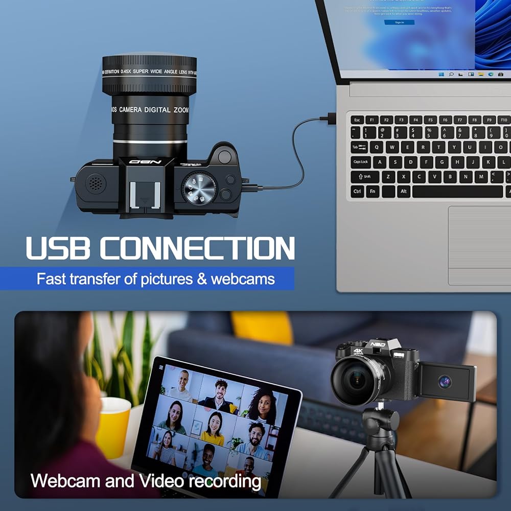 • 【كاميرات AF&MF محسنة بدقة 48 ميجابكسل للتصوير الفوتوغرافي: تتميز الكاميرا الرقمية NBDDIGITAL بوظيفة التركيز التلقائي. في وضع التصوير الفوتوغرافي، يؤدي الضغط الخفيف على زر الالتقاط إلى تثبيت الكاميرا، مع التركيز تلقائيًا على النقطة المطلوبة. بالإضافة إلى ذلك، فهي تدعم التكبير الرقمي بمعدل 16x لالتقاط الأهداف البعيدة بسهولة.